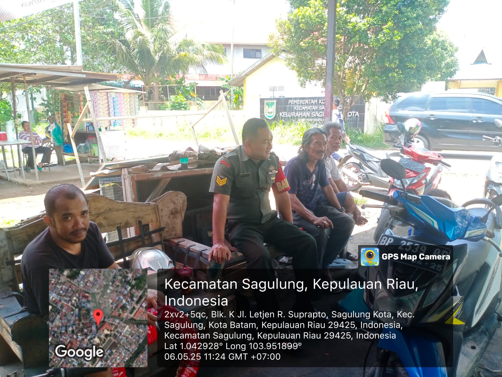 Kodim0316]  Babinsa Sagulung Kota Koramil 02 Sekupang Serka Hamid Muzaqqi melaksanakan kegiatan komsos bersama warga bertempat di kelurahan Sagulung Kota.Selasa [06/05/2025].