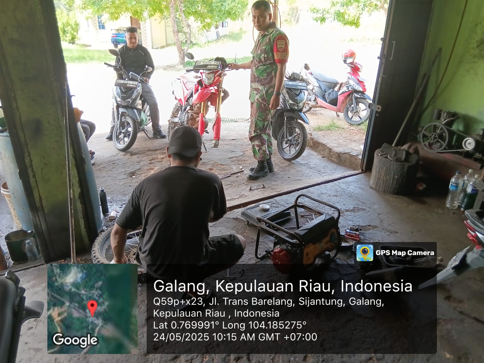 Kodim0316] Babinsa 07 kel. Sijantung Koramil 04/Galang serda Dedi Putra melaksanakan kegiatan komsos bersama warga bertempat di RT 02 Kel. Sijantung kec. Galang.Sabtu [24/05/2025].