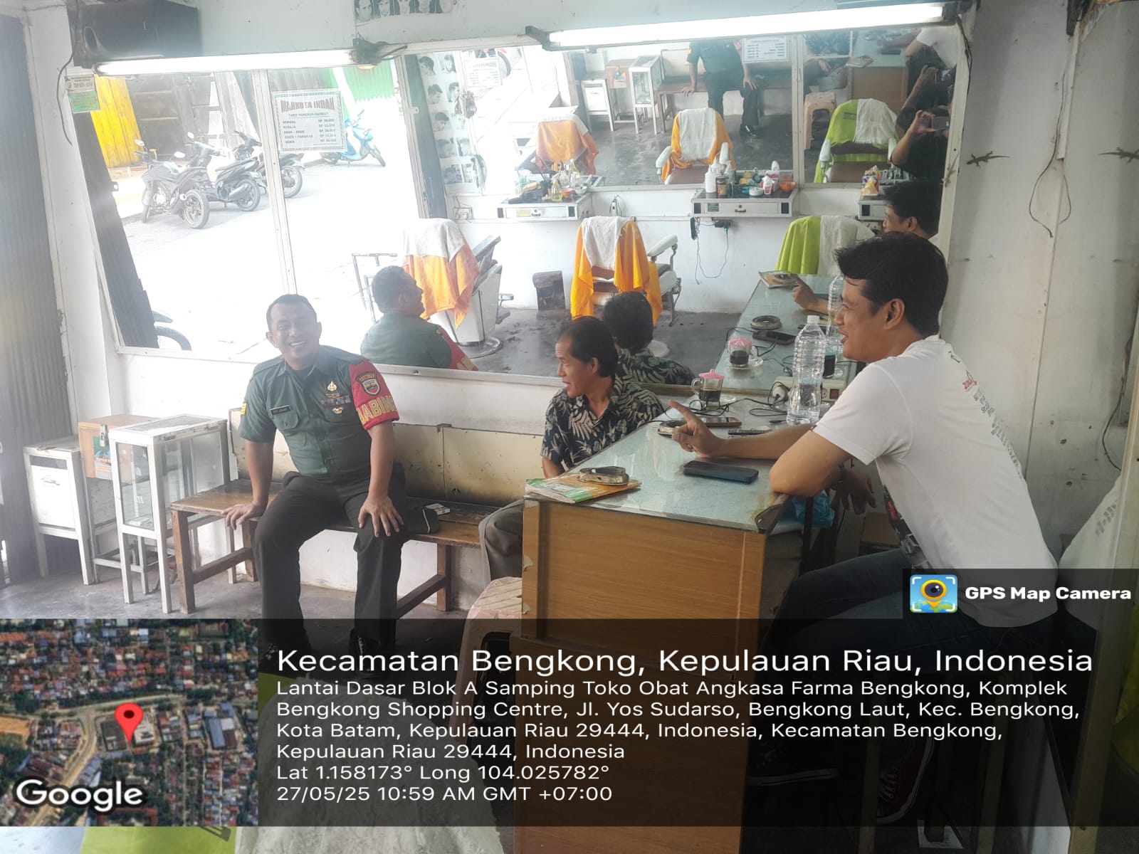 Kodim0316] Babinsa Kel Bengkong Laut Serma Epi johar melaksanakan komsos di Shoping Centre Rw 05 Bengkong Laut Kec.Bengkong .Selasa [27/05/2025].