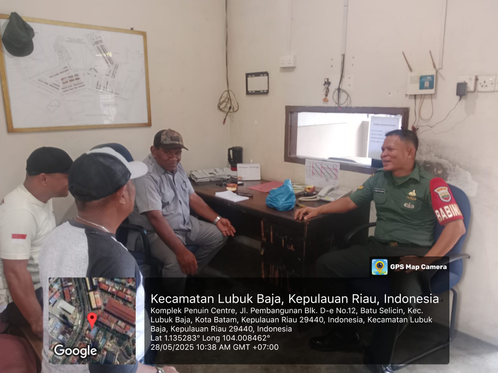 Kodim0316] Babinsa 06 Kelurahan Batu selicin Sertu Rizki fauzan melaksanakan komsos di pos sekuriti pasar pinuin kel. Batu selicin kec. Lubuk baja.Rabu [28/05/2025].