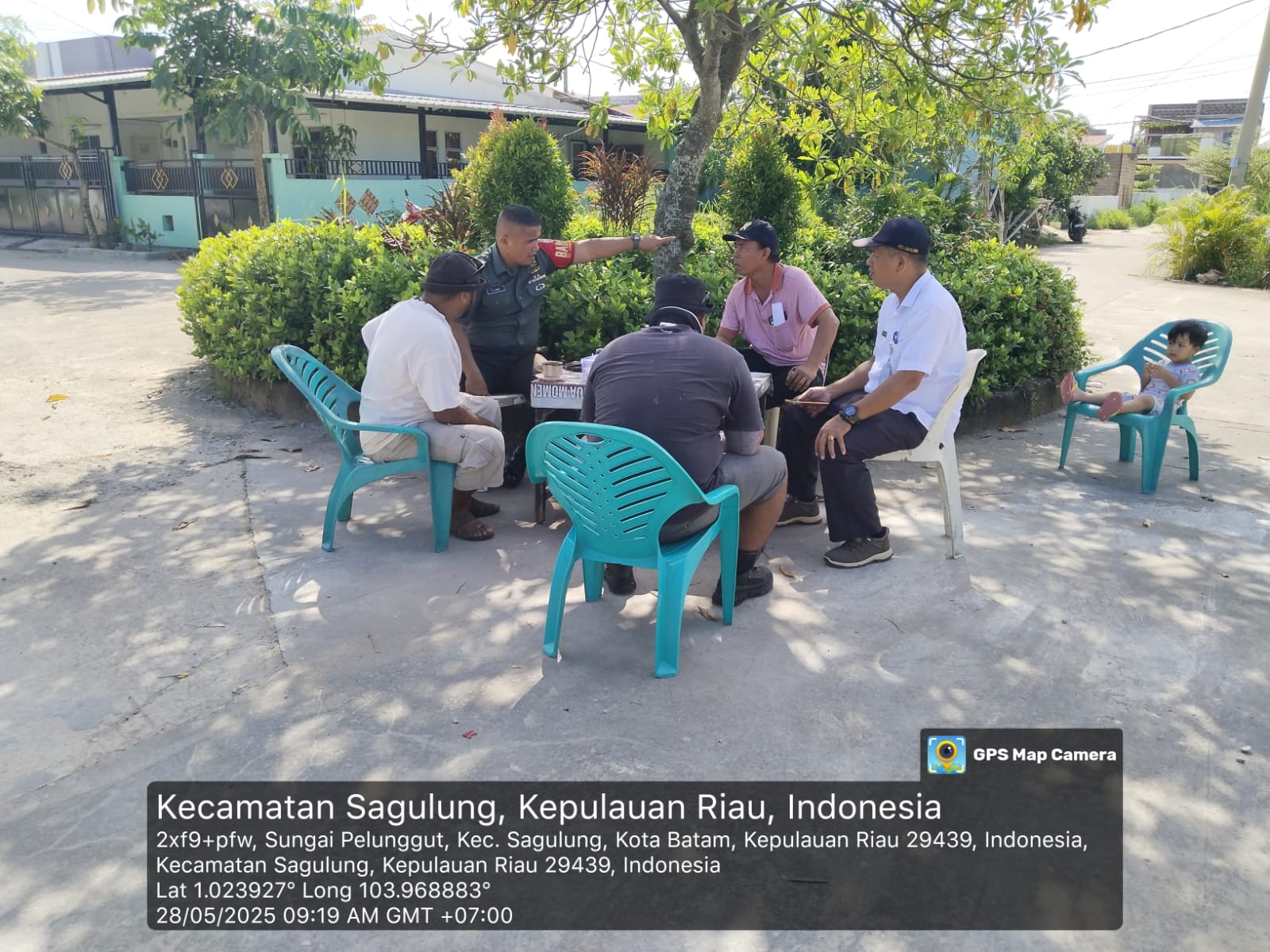 Kodim0316] Babinsa 20/Sungai Pelunggut Koramil 02/Sekupang Sertu P Lubis melaksanakan kegiatan Komsos bersama Kasi Kelurahan,RT/RW bertempat di Perumahan Jolin RT 009 RW 03Kel:Sungai Pelunggut Kec:Sagulung.Rabu [28/05/2025].