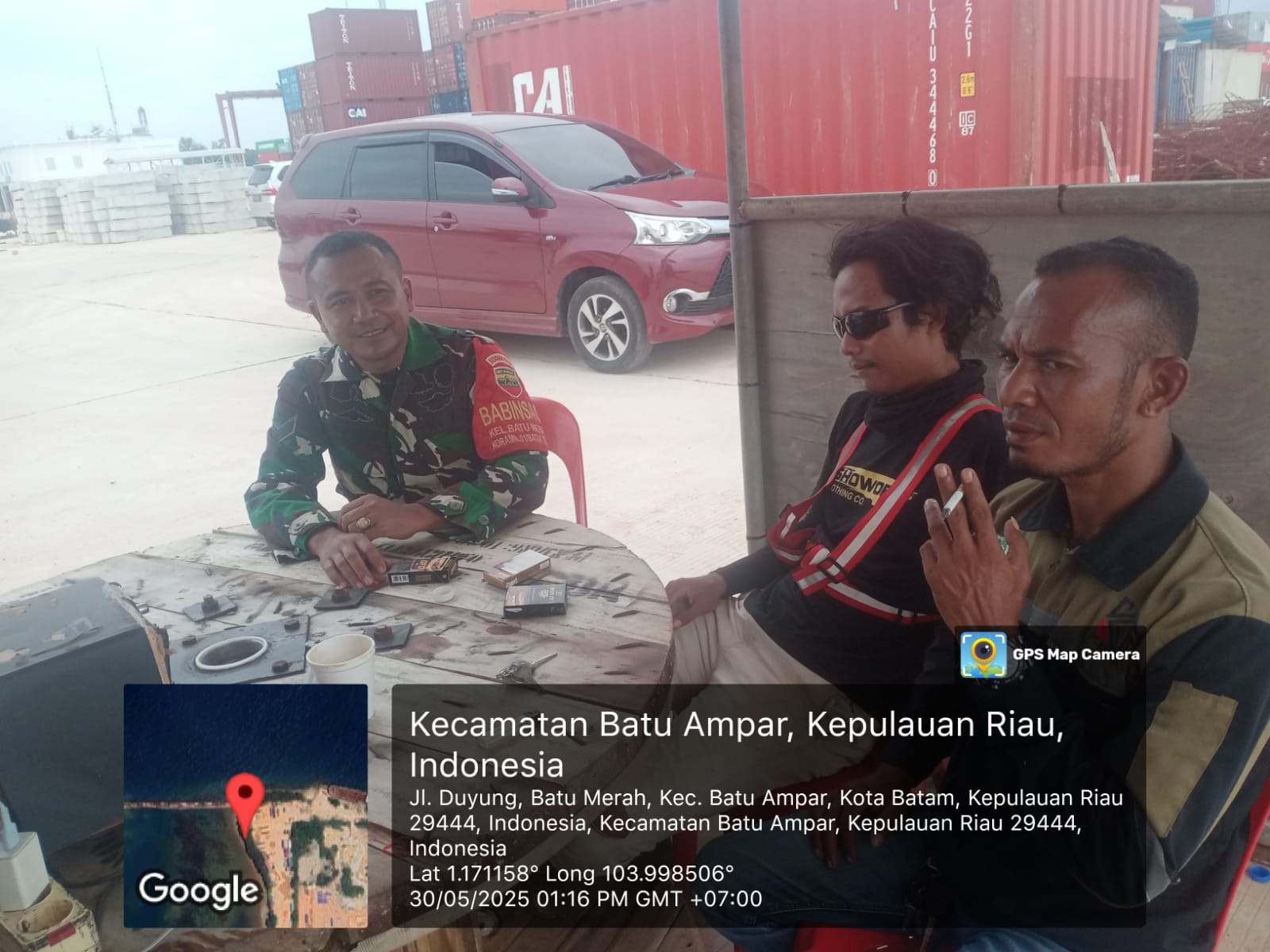 Turut hadir dalam kegiatan tersebut,Babinsa 02/Kel. Batu Merah SERTU ANTON WIBOWO, Bapak Joko,saudara Akbar.