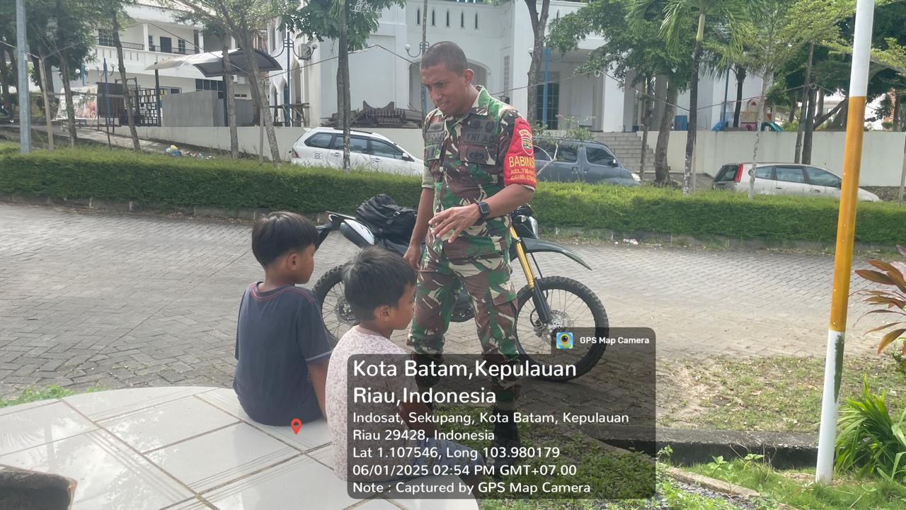Turut hadir dalam kegiatan tersebut, Babinsa 10 Kelurahan Tiban Lama Kopda Laode Ahmad, anak warga perumahan tiban mas.