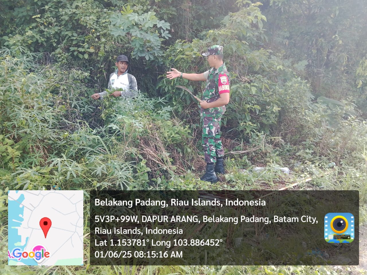 Kodim0316] Babinsa 06/Kasu Serda O.Banjarnahor melaksanakan kegiatan Komsos dengan warga yang sedang melakukan pembersihan jalan yang sudah berumput lebat,bertempat di Dapur Arang kel.Sekanak Raya.Kecamatan Belakang Padang.Minggu [01/06/2025].
