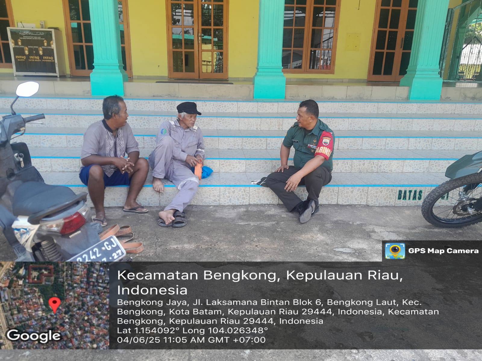 Kodim0316] Babinsa 10 kel bengkong Laut Serma Epi johar melaksanakan Komsos Dengan Warga halaman masjid Al anshar Rw 07 Bengkong Jaya,Kel Bengkong Laut,Kec. Bengkong.Rabu [04/06/2025].