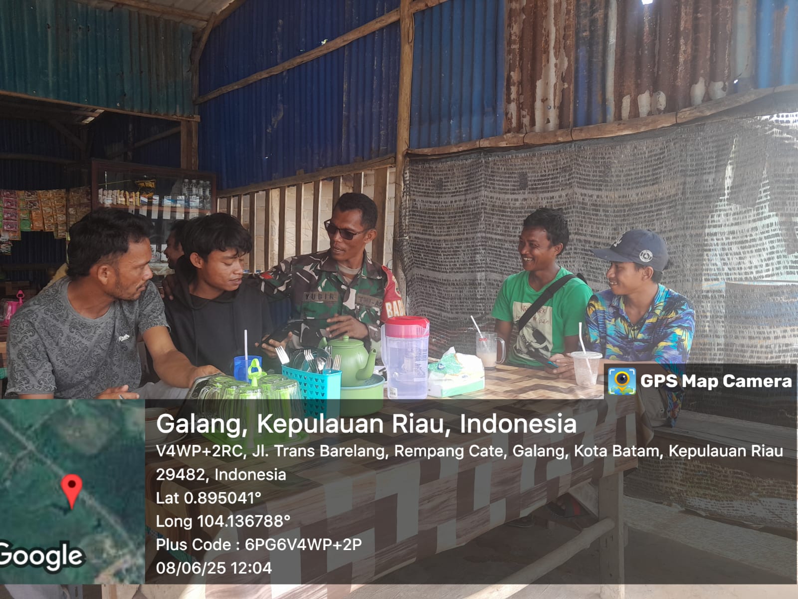 Kodim0316]  Babinsa 05 Kel. Rempang Cate Koramil 04/Galang melaksanakan kegiatan komsos bersama masyarakat binaan di  Kel Rempang Cate. Kecamatan Galang.Minggu [08/06/2025].