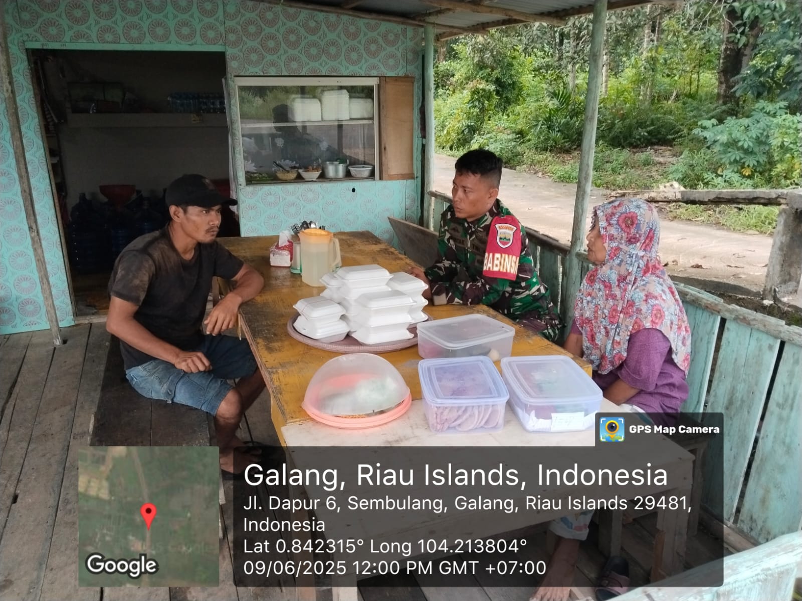 Turut hadir dalam kegiatan komsos tersebut, Serda J. Simanjuntak (Babinsa 01 Kel. Sembulang), Bapak Deny (Warga), Ibu Lisna (Warga).