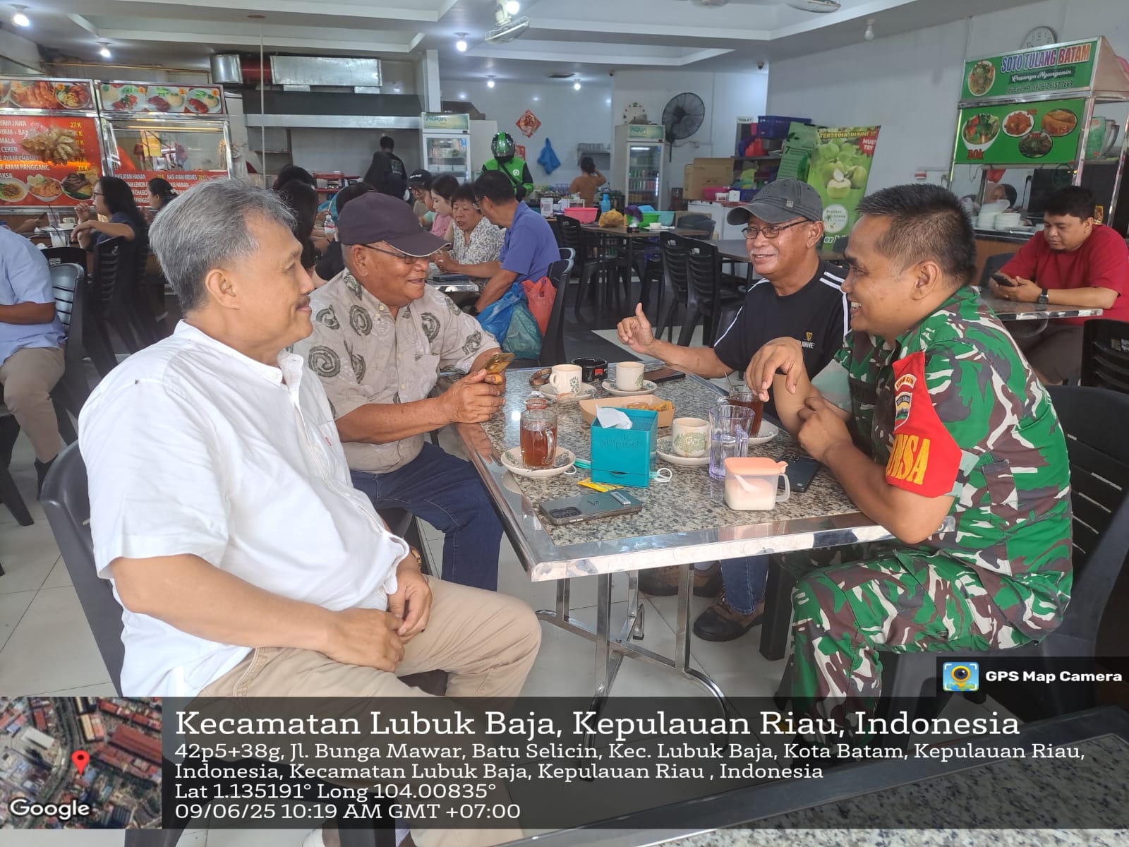 Kodim0316]Babinsa 06 Keluaran Batu Selicin Koramil 01/Lubuk Baja Koptu Kamber Simbolon, melaksanakan kegiatan silaturahmi dan serapan pagi bersama warga Binaan.Komplek Penuin, RT 03 RW 11, Kelurahan Batu Selicin, Kecamatan Lubuk Baja.Senin [09/06/2025].