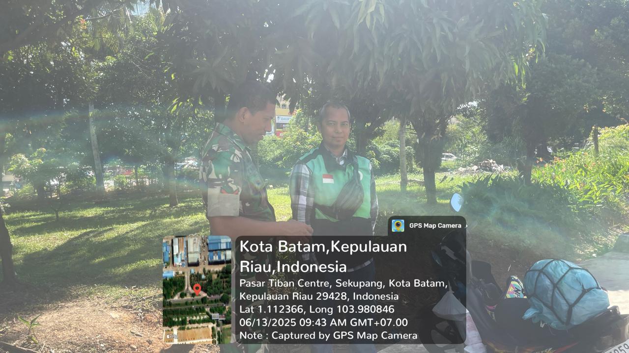 Kodim0316] Babinsa 10 Kelurahan Tiban Lama Koramil 02/Sekupang, Kopda Laode Ahmad, melaksanakan kegiatan Komunikasi Sosial (Komsos) di wilayah binaan bersama para driver ojek online.