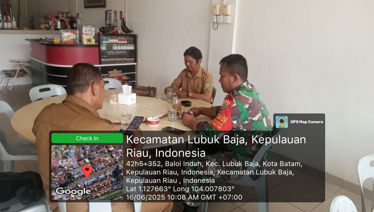 Kodim0316]  Babinsa 09 Kel. Baloi Indah Serda Berlian Situmorang Melaksanakan komsos bersama Kasi Trantib Kel Baloi Indah bertempat di komplek Baloi permata Baloi Indah.Senin [16/06/2025].