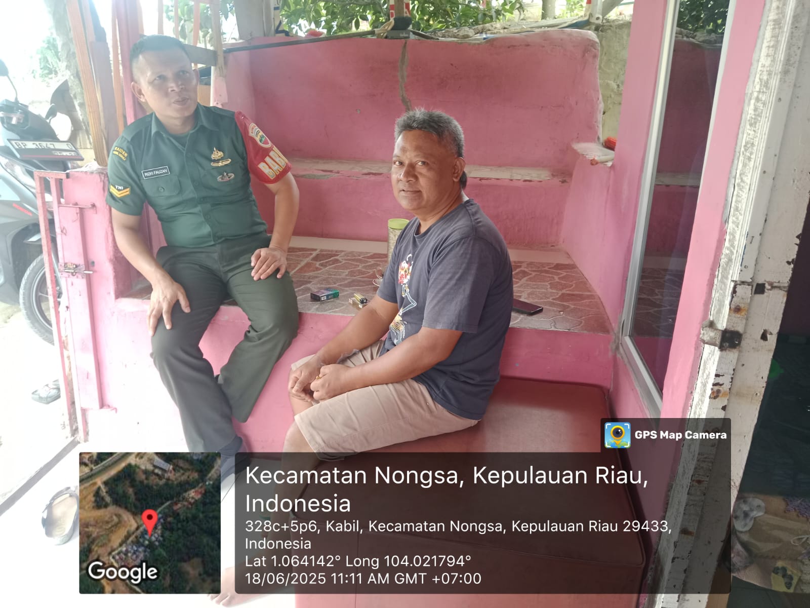 Kodim0316] Babinsa 15 Kelurahan Muka kuning melaksanakan kegiatan komsos bersama dengan warga binaan yang bertempat di Kampung salak Kelurahan Muka Kecamatan Lubuk Baja.Rabu [18/06/2025].