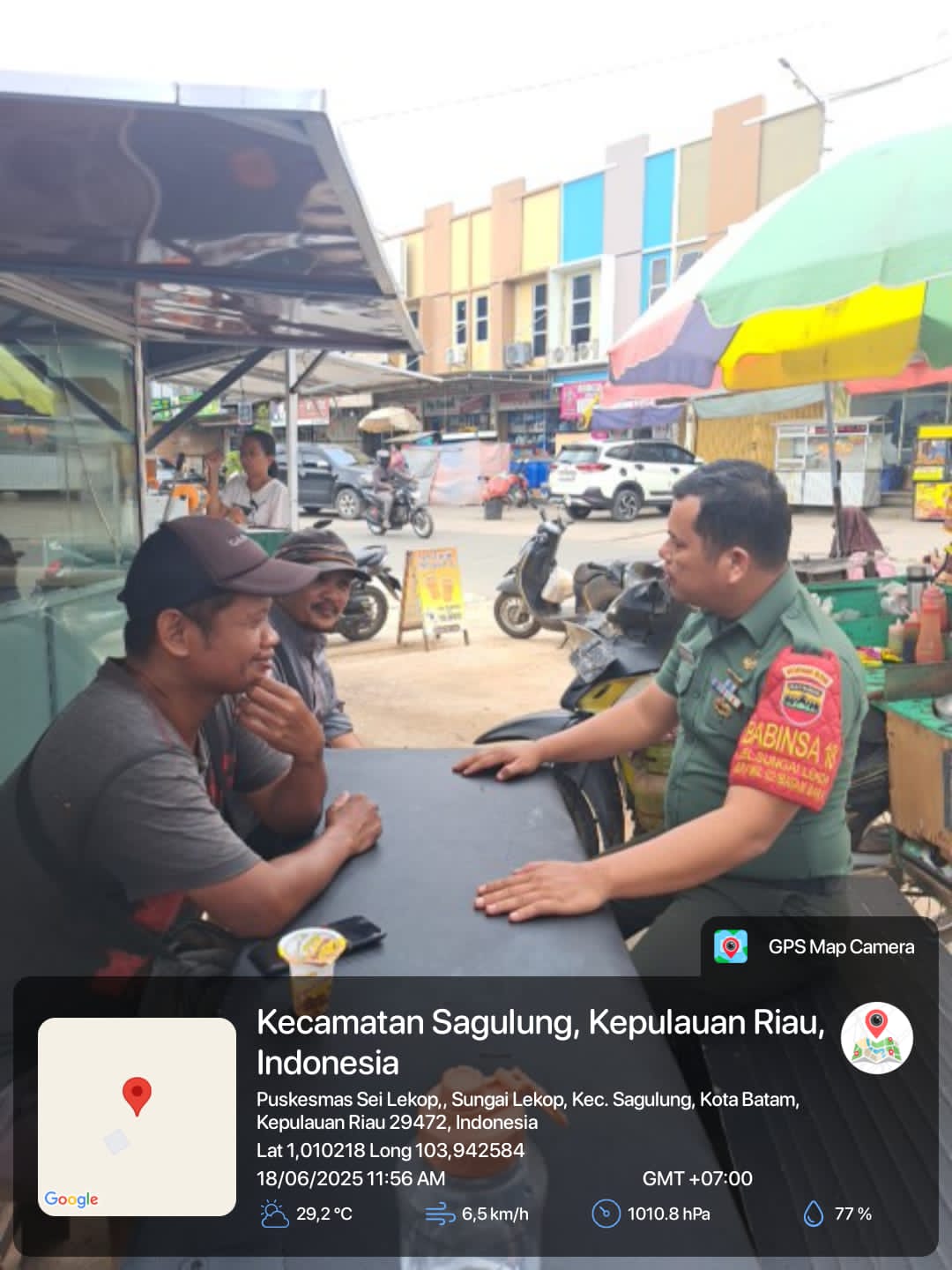 Kodim0316] Babinsa 18 Seilekop Koramil 02/Sekupang Serda T.Bakkara melaksanakan komsos bersama pedagang Pinggirjalan di wilayah Binaan.Rabu [18/06/2025].