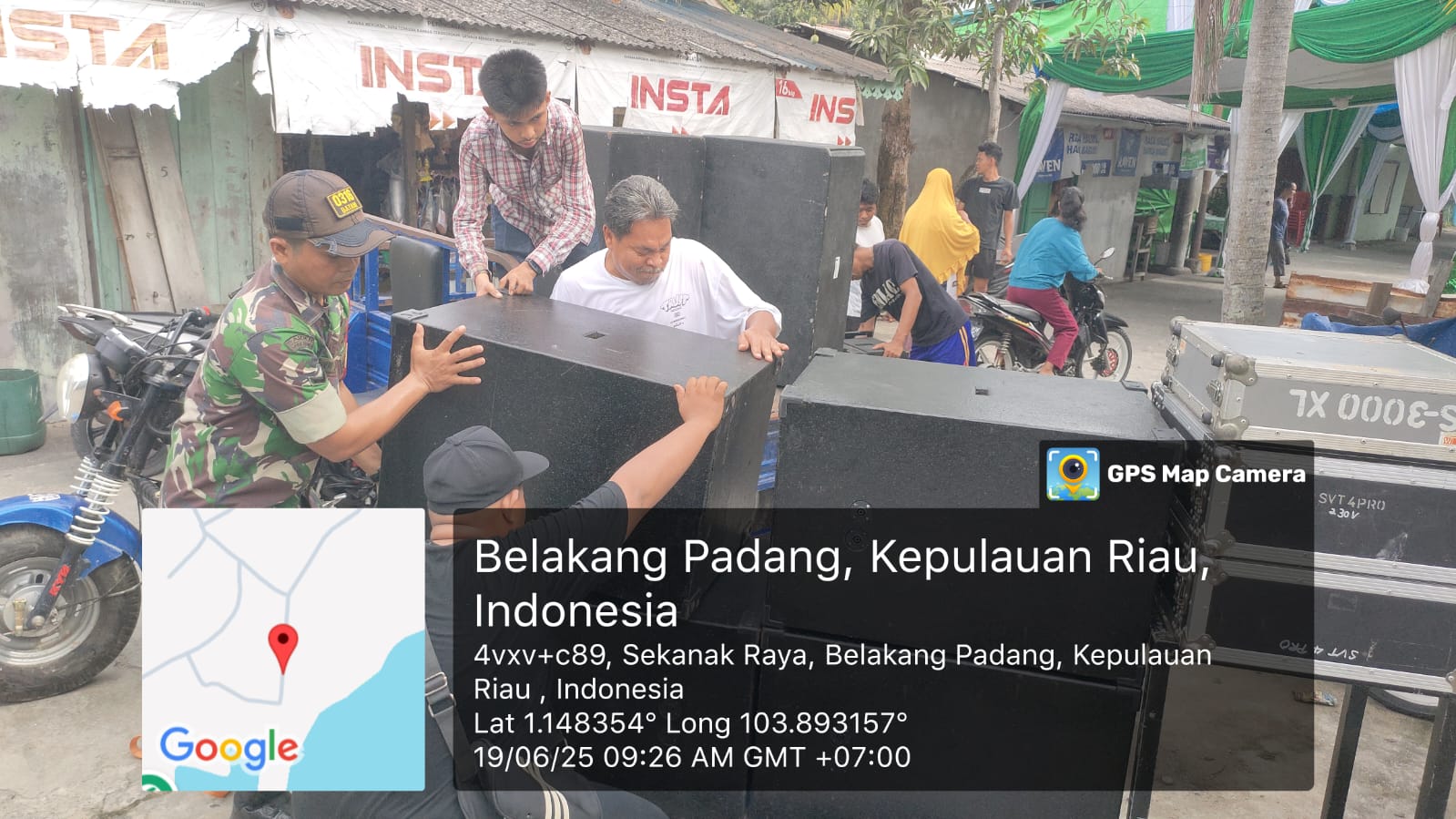 Pada pelaksanaan kegiatan ini Babinsa menjalin hubungan komunikasi dengan warga binaan yang sedang bekerja memasang alat sound system yang akan di pakai pada acara pesta pernikahan,Babinsa membantu warga mengangkat peralatan sound system untuk meringankan pekerjaan warga binaan.