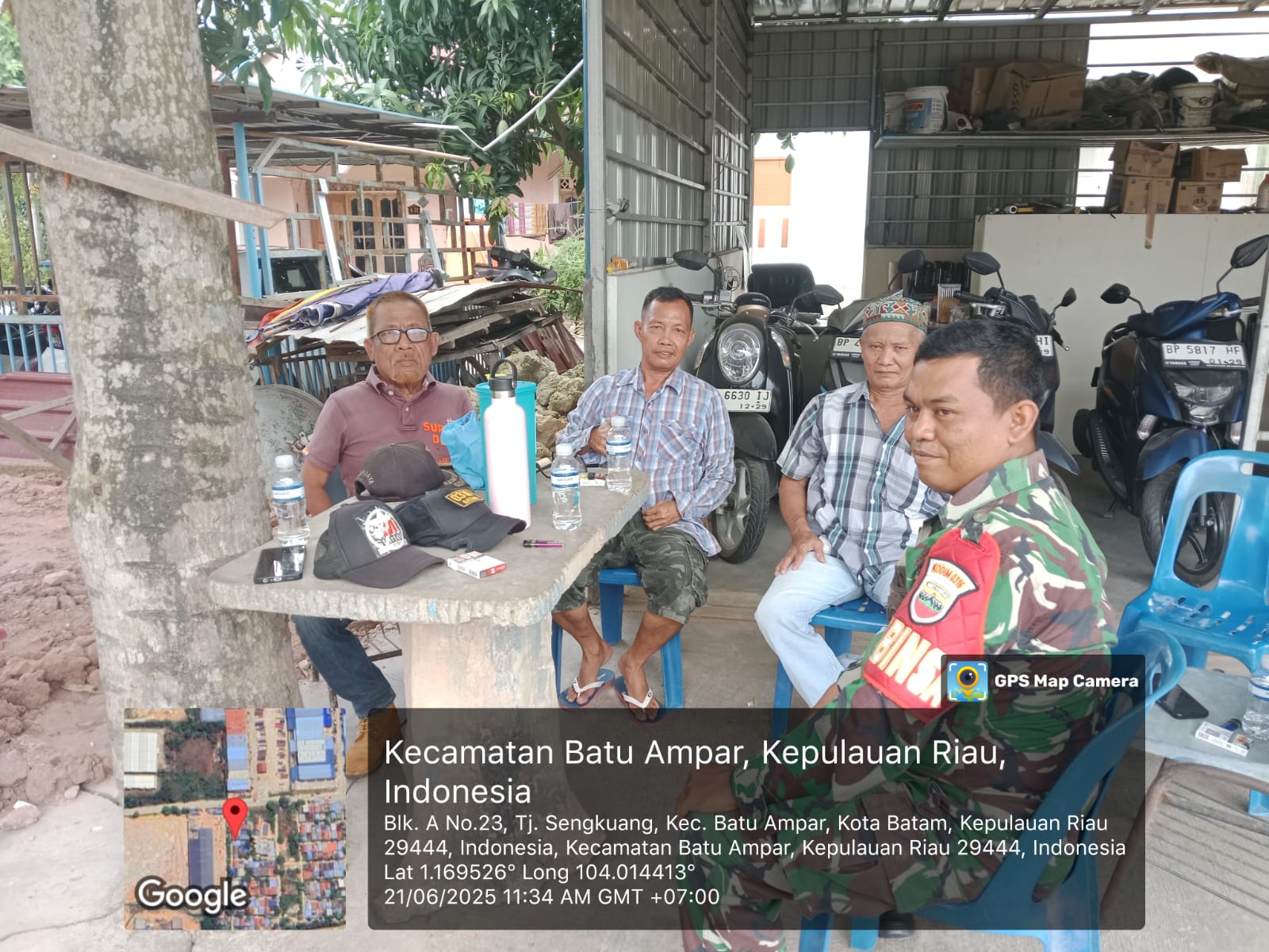 Kodim0316] Babinsa 03/Kel Tanjung Sengkuang Koramil 01/LB Kopda Jakson Purba melaksanakan komsos di RT 01 RW 06 Kel Tanjung Sengkuang Kec Batu Ampar.Sabtu [21/06/2025].