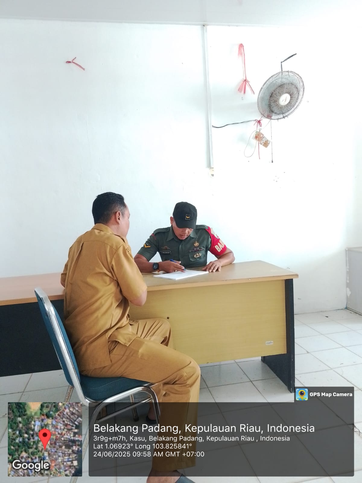 Kodim0316] Babinsa 06/Kasu.Serda O.Banjarnahor,melaksanakan kegiatan Komsos dengan Staf Keluarahan sekaligus menjalin Silaturahmi bertempat di kantor Kelurahan Kasu.Kec Belakang Padang.Selasaa [24/06/2025].