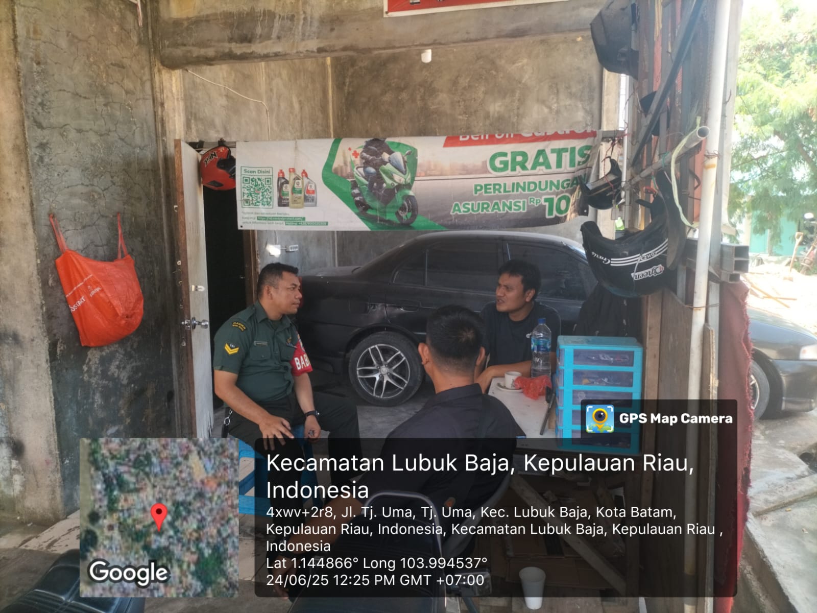 Kodim0316] Babinsa 07 Tg Uma Sertu Thomsony Siregar Koramil 01 Lubuk Baja melaksanakan Komsos bersama warga di kampung Tanjung teritip RT 003,RW 011 kelurahan Tanjung Uma kec Lubuk Baja kota Batam.Selasa [24/06/2025].