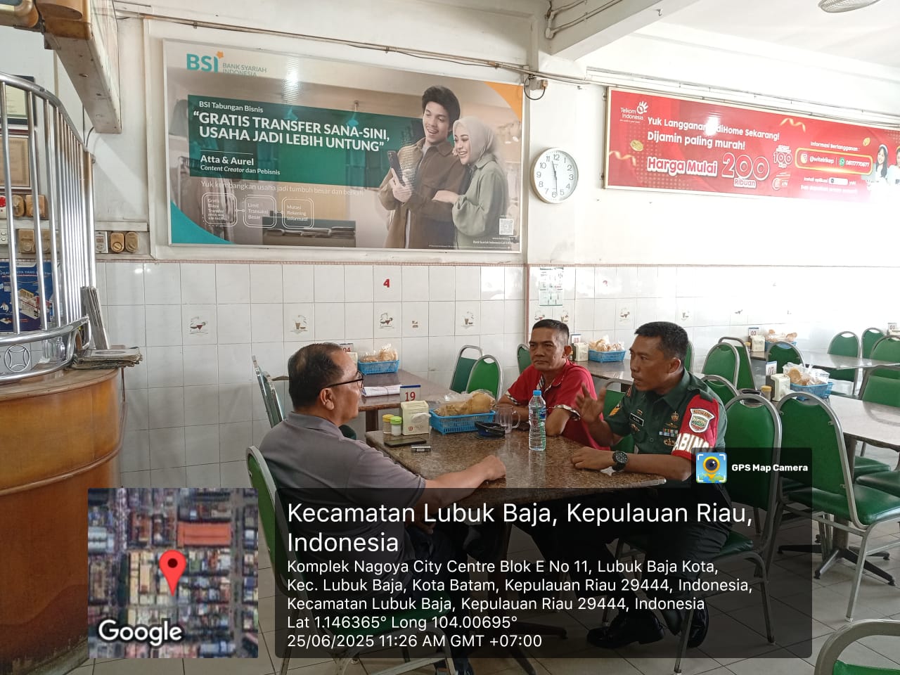 Kodim0316] Serka Faizal Babinsa 08 Kelurahan Lubuk Baja Kota Koramil 01/LB, Serka Faizal melaksanakan Komsos bersama warga binaan, bertempat di Restoran Yongkee Nagoya Kel. Lubuk Baja Kota Kec. Lubuk Baja.Rabu [25/06/2025].