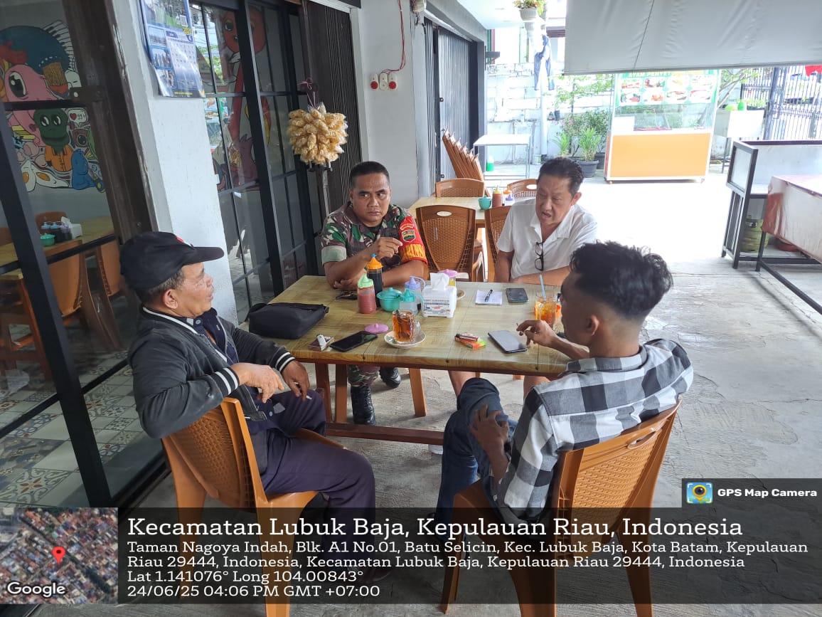 Kodim0316] Babinsa 06 Kelurahan Batu Selicin Koptu Kamber Simbolon melaksanakan Komsos di Komplek Taman Nagoya Indah Kel.Batu Selicin Kec. Lubuk Baja.Rabu [25/06/2025].