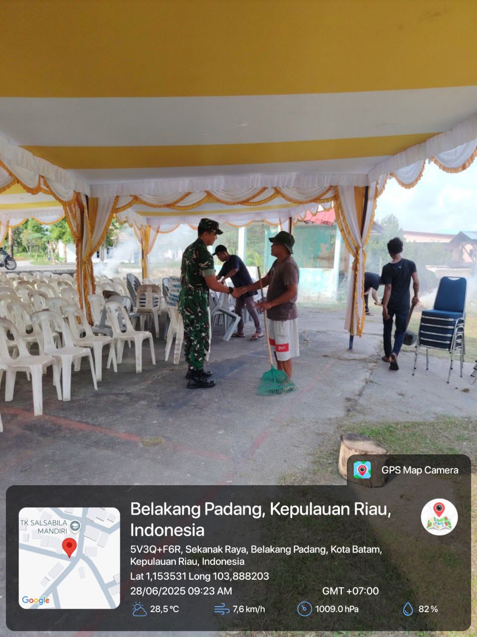Kodim0316] Babinsa 03/Kel. Pemping Koramil 05/Belakang Padang Serka Eko Pranoto melaksanakan Komsos sekaligus melaksanakan gotong-royong dengan warga binaan dalam rangka penyiapan acara Tahun Baru Hijriah bertempat di Kec. Belakang Padang.Sabtu [28/06/202].