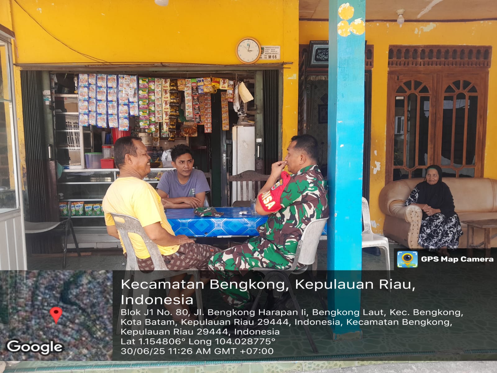 Kodim0316] Babinsa 10 kel bengkong Laut Serma Epi johar melaksanakan Komsos Dengan Warga di RT 06 Rw 08 bengkong harapan,Kel Bengkong Laut,Kec. Bengkong.Senin [30/06/2025].
