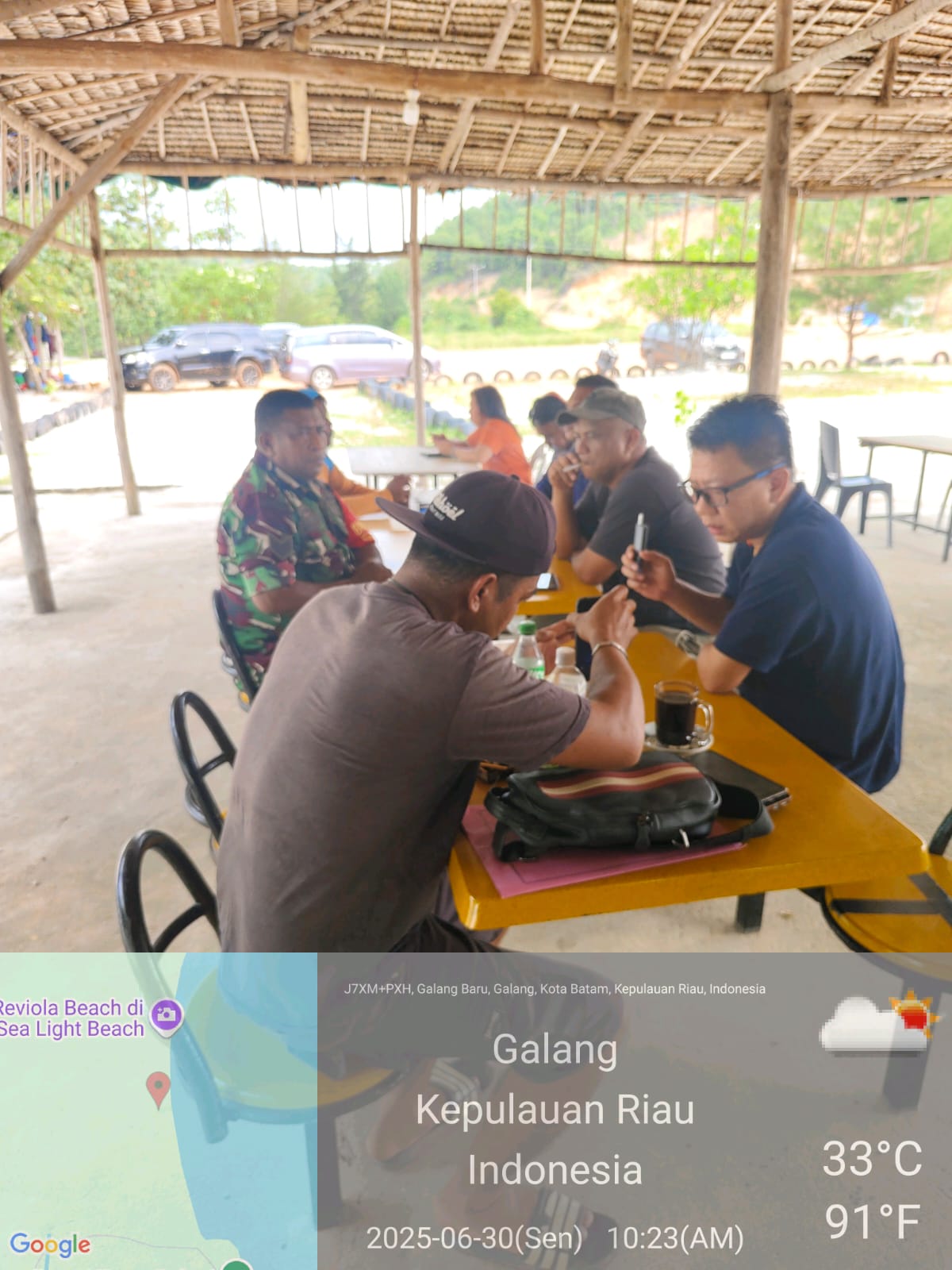 Kodim0316] Babinsa 08 kel. Galang baru Koramil 04/Galang serka Muhammad djaibakal melaksanakan kegiatan komsos bersama warga pulau sembur bertempat di pantai reviola beack ,kel. Galang baru kec. Galang.Senin [30/06/2025].