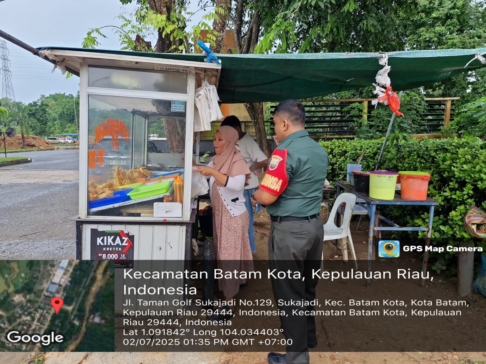 Babinsa 09 Kelurahan Sukajadi Koramil 03/Nongsa Menyambangi Pedagang Gorengan Sekaligus Monitoring Wilayah Binaan