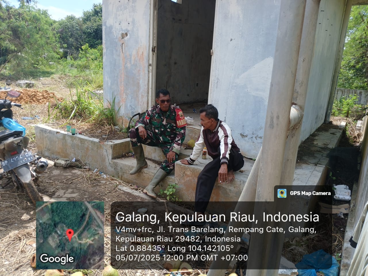 KODIM0316] Babinsa 05 Kel. Rempang Cate Koramil 04/Galang melaksanakan kegiatan komsos bersama masyarakat binaan di Kel Rempang Cate. Kecamatan Galang.Sabtu [05/07/2025].