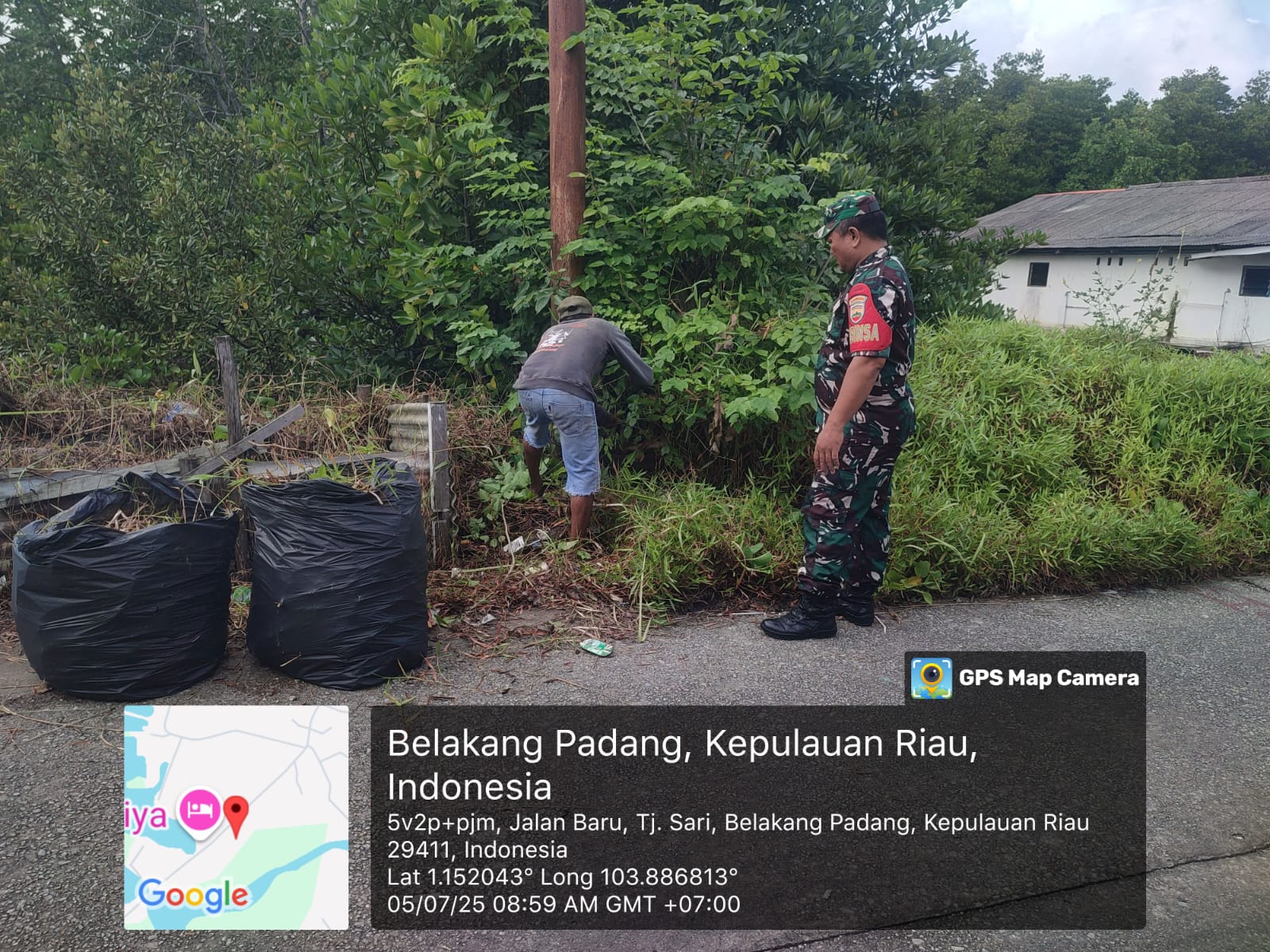 Kodim0316] Babinsa 05 Kel.Pulau Terong Koramil 05 Belakang Padang Koptu Dedi Nainggolan melaksanakan kegiatan Komsos bersama masyarakat di Kampung Baru Kecamatan Belakang Padang.Sabtu [05/07/2025].