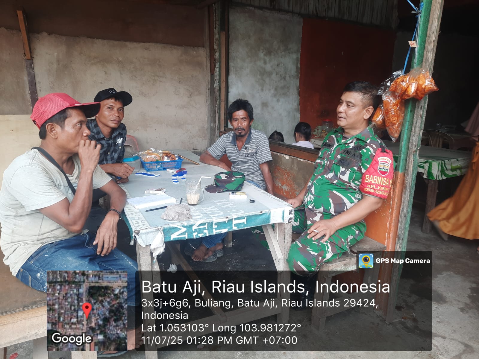 Kodim0316] Babinsa 16 kibing Koramil 02/Sekupang Sertu Marzen Tanjung Melaksana Komsos di Ruli pasir putih kel, kibing Batuaji.Jum’at [11/07/2025].