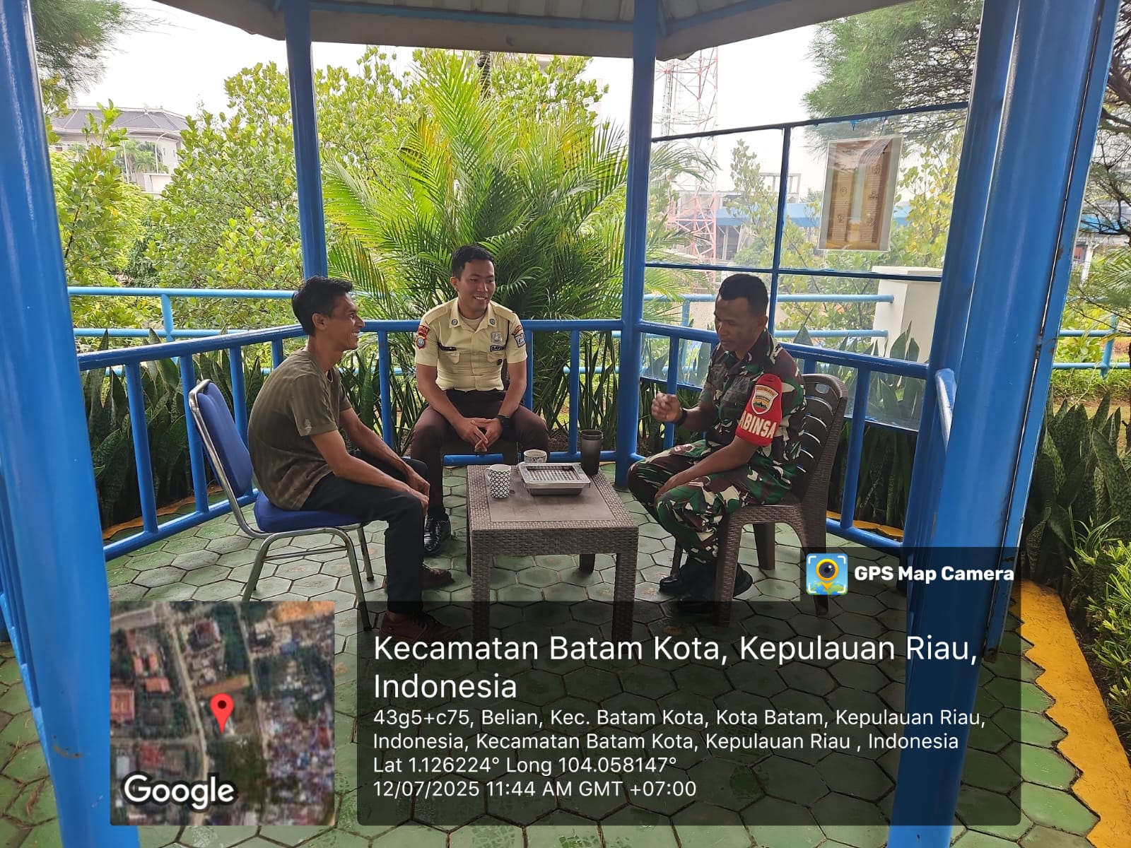 Kodim0316] Babinsa 06 Kelurahan Belian Koramil 03/Nongsa Melaksanakan Monitoring wilayah dan komsos dengan petugas keamanan dan warga binaan yang bertempat di RW 02 Kelurahan Belian Kecamatan Batam Kota.Sabtu [13/07/2025].