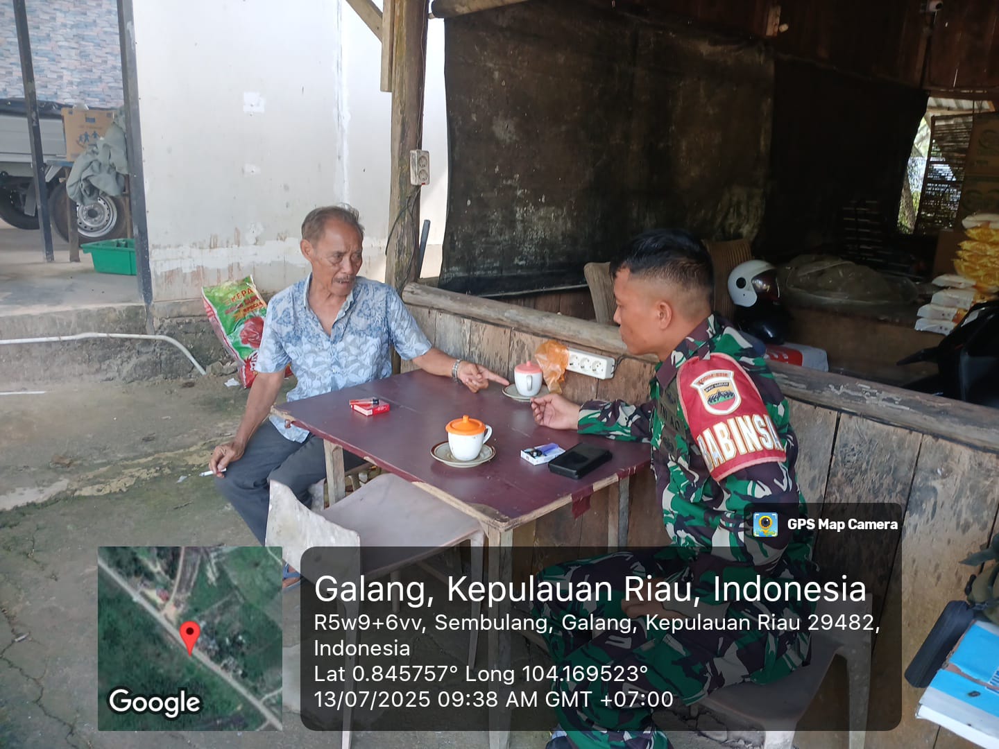 Kodim0316] Babinsa 01 Kelurahan Sembulang melaksanakan kegiatan komunikasi sosial (Komsos) bersama warga bertempat di Kelurahan Sembulang, Kecamatan Galang.Minggu [13/07/2025].