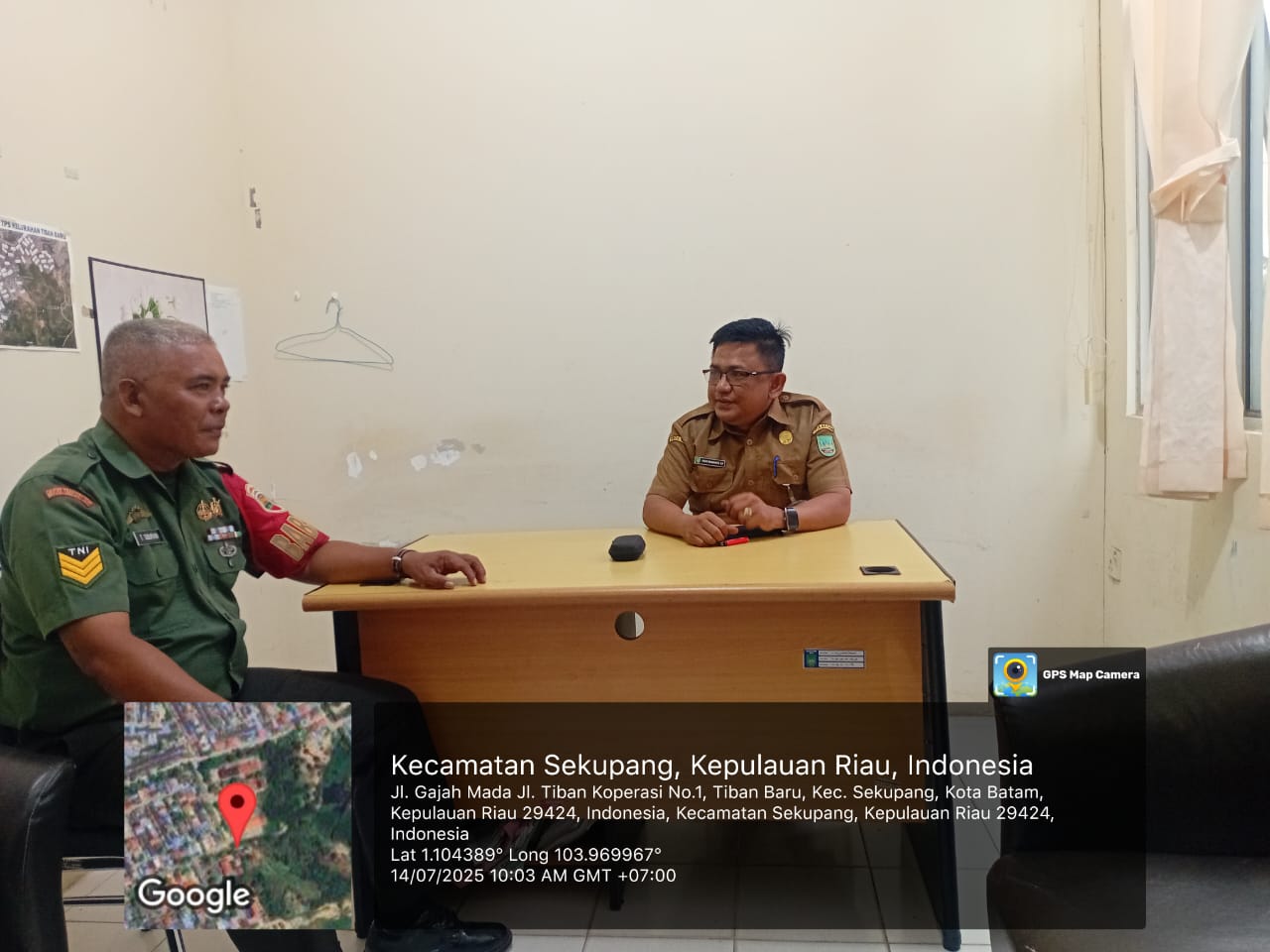 Kodim0316] Babinsa 13 Kelurahan Tiban Baru Koramil02 /Sekupang Serka T.Siburian Melaksanakan Kegiatan Komsos Bersama Staf Keluarahan Tiban Baru dan Monitoring Wilayah Binaan di Kelurahan tiban baru.Sekupang.Senin [14/07/2025].