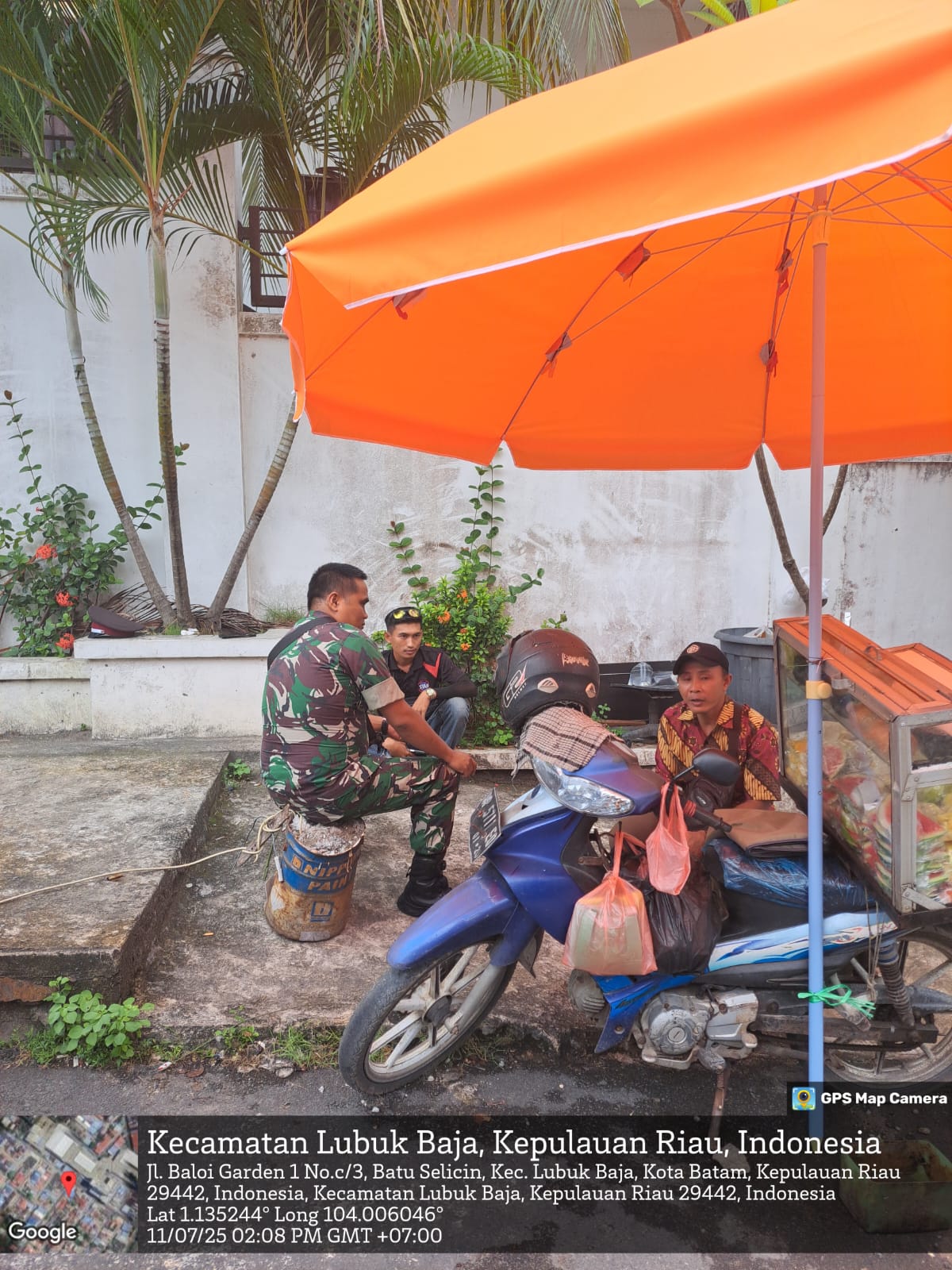 Kodim 0316] Babinsa 06 Kelurahan Batu Selicin Koptu Kamber Simbolon Koramil 01/LB Melaksanakan Sambang dan Patroli Di Komplek Baloi Permai Kepada Pedagang Kaki Lima Kelurahan Batu Silicin Kec. Lubuk Baja.Kamis [17/07/2025].