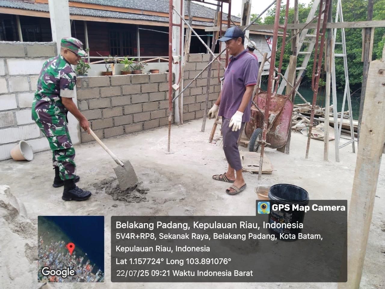 Kodim0316] Babinsa 01/Kel. Sekanak Raya Koramil 05/Belakang Padang melaksanakan kegiatan Komsos bersama tukang yg lagi mengerjakan rumah warga bertempat di Kampung Jawa Kel. Sekanak Raya, Kec. Belakang Padang.Selasa [22/07/2025].