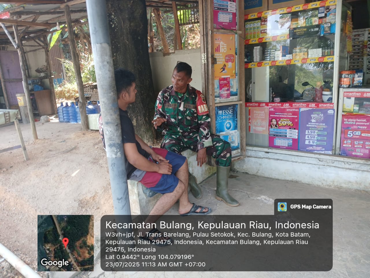 Kodim0316] Babinsa 05 Kel. Rempang Cate Koramil 04/Galang melaksanakan kegiatan komsos bersama masyarakat binaan di Kel Rempang Cate. Kecamatan Galang.Rabu [23/07/2025].