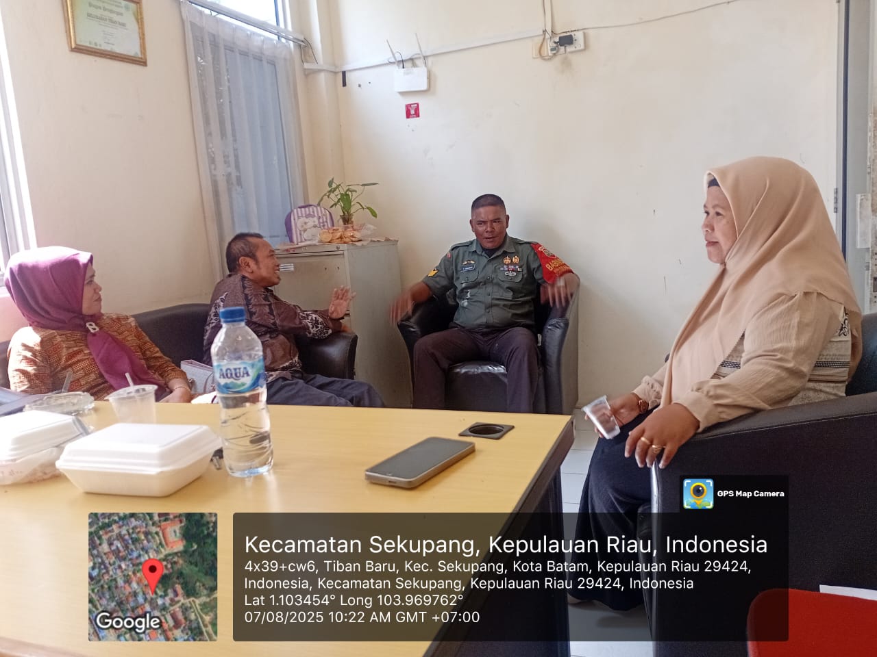 Kodim0316] Dalam rangka meningkatkan sinergitas dan komunikasi yang harmonis, Babinsa Kelurahan Tiban Baru Koramil 02/Sekupang, Serka T. Siburian, melaksanakan kegiatan komunikasi sosial (Komsos) bersama aparat pemerintah (Apem) Kelurahan Tiban Baru, Kecamatan Sekupang, Kamis (7/8/2025) pukul 10.00 WIB.
