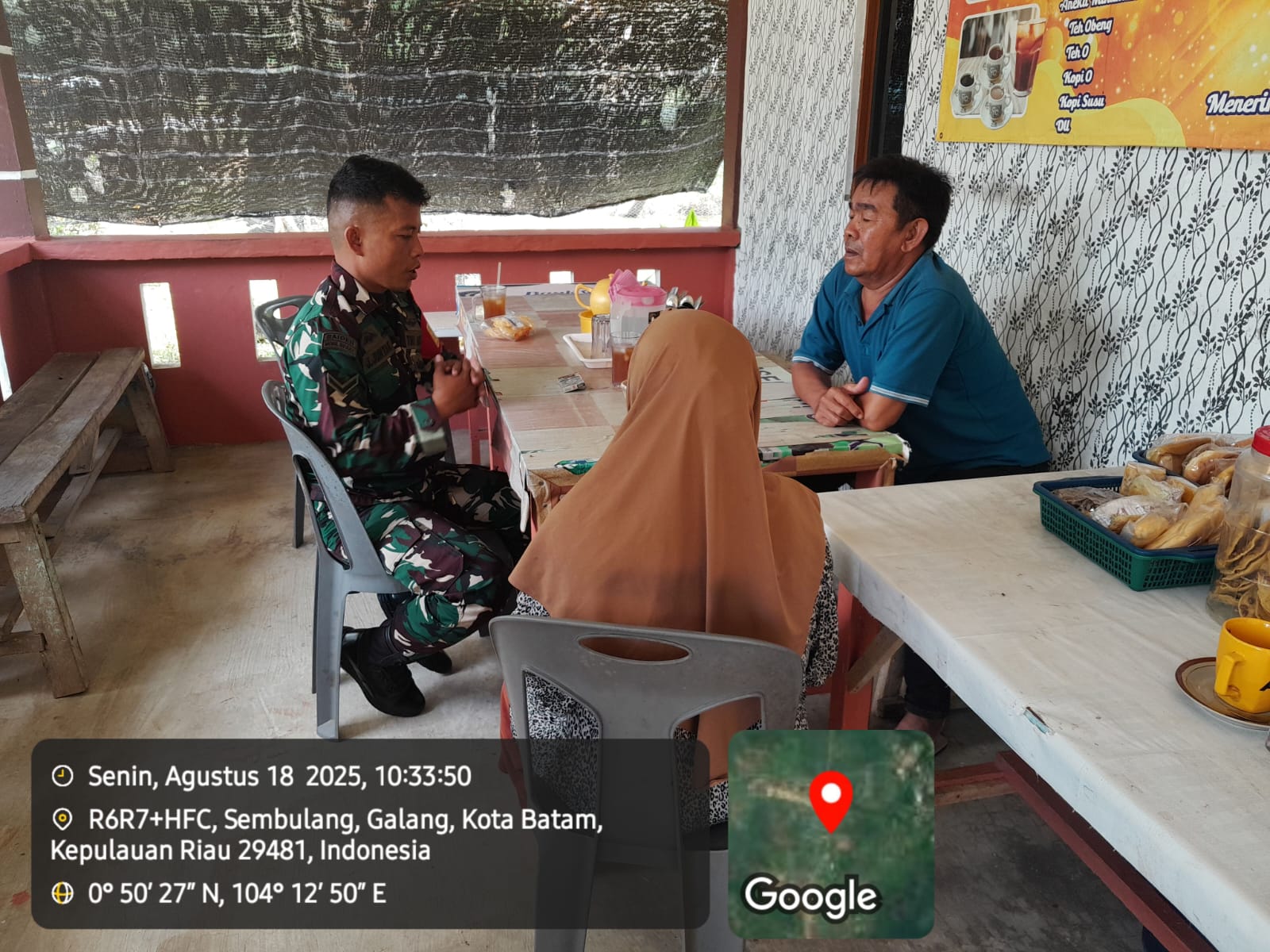 Kodim0316] Babinsa Kelurahan Sembulang, Koramil 04/Galang, Serda J. Simanjuntak melaksanakan komunikasi sosial (Komsos) bersama warga binaan di Kelurahan Sembulang, Kecamatan Galang, Senin (18/8/2025).