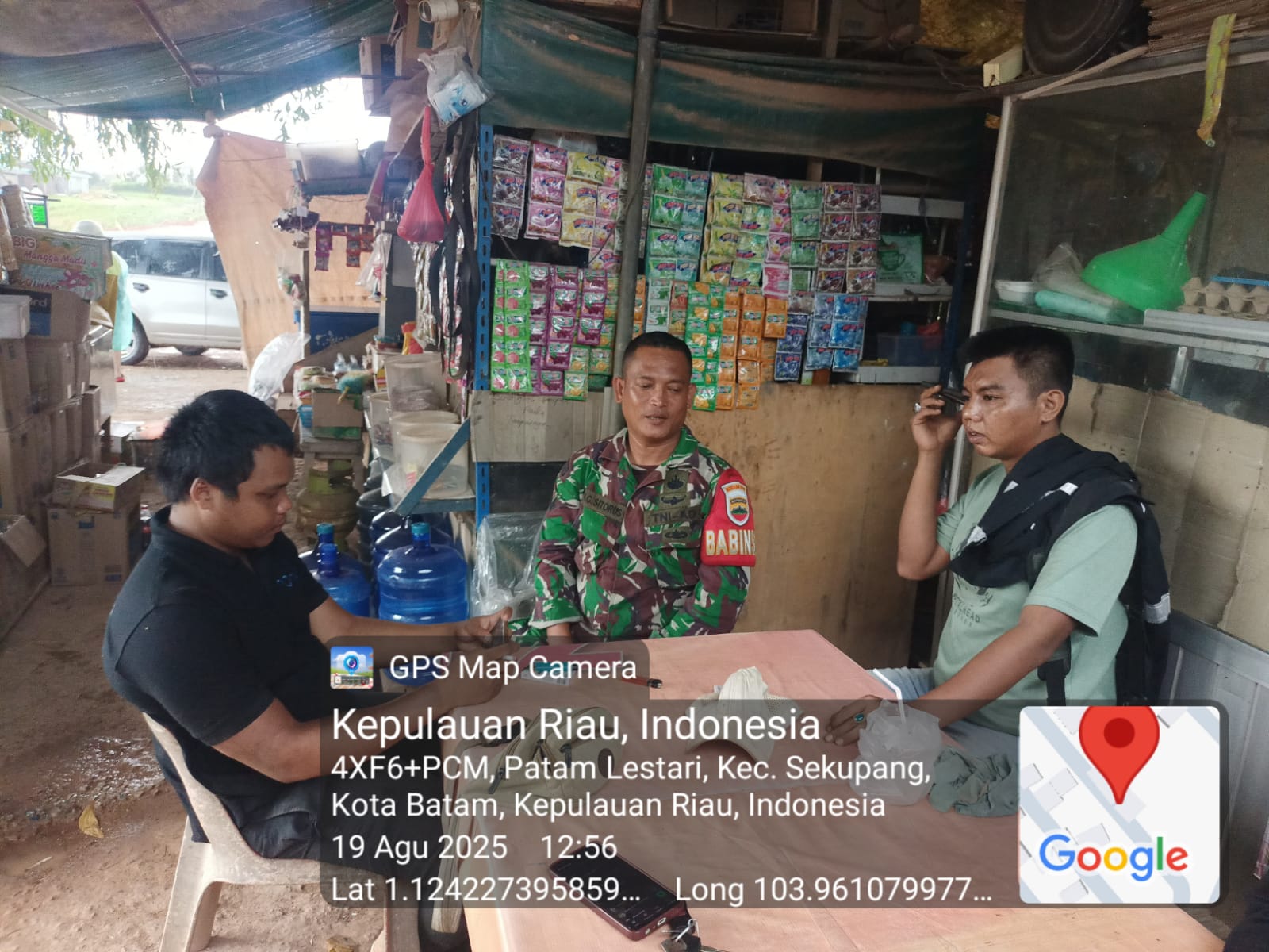 Kodim0316) Babinsa Kelurahan Patam Lestari, Koramil 02/Sekupang, melaksanakan kegiatan komunikasi sosial (Komsos) bersama warga di RT 02 RW 13, Kelurahan Patam Lestari, Kecamatan Sekupang, Selasa (19/8/2025).