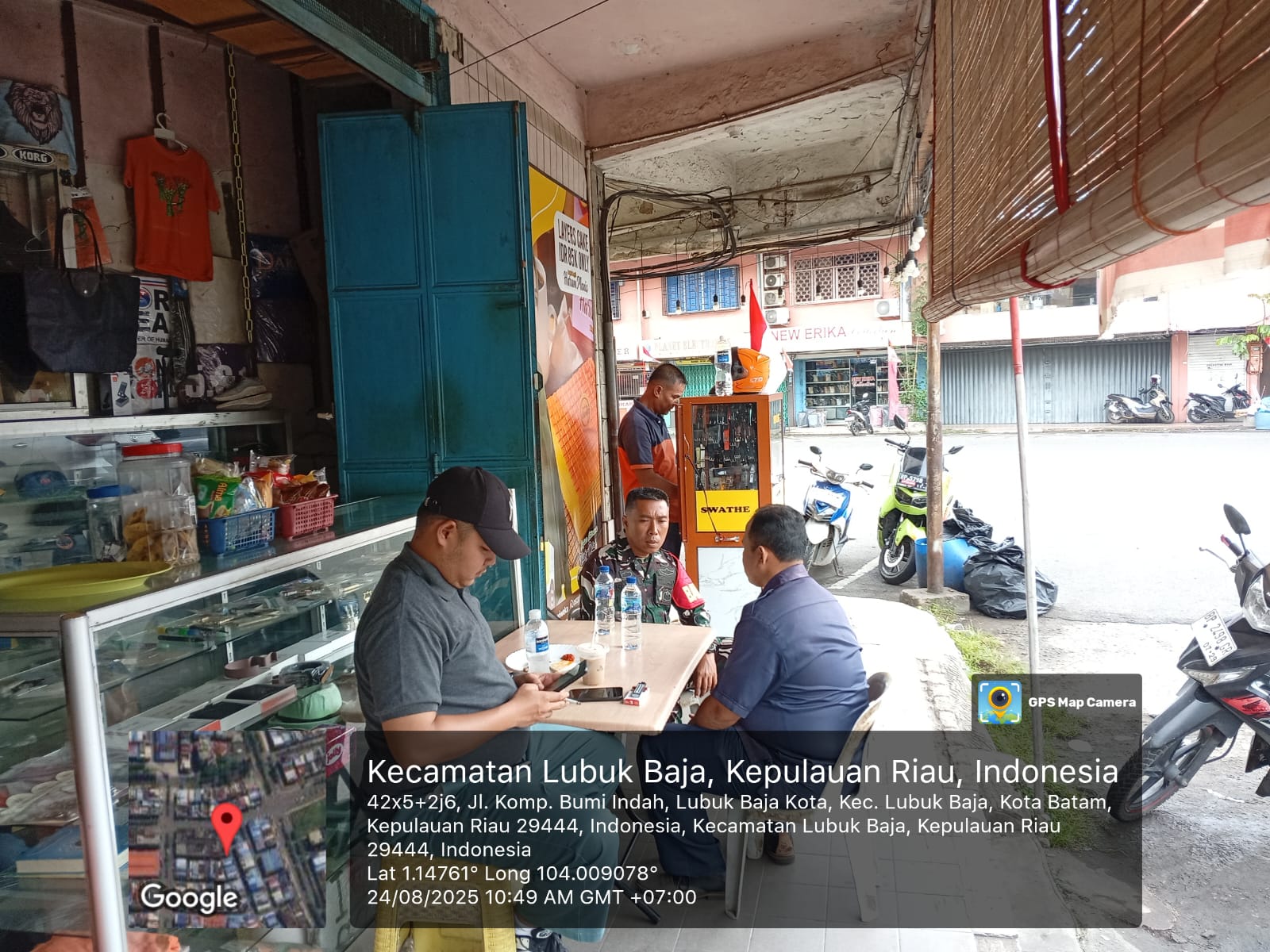 Kodim0316] Babinsa Kelurahan Lubuk Baja Kota, Koramil 01/LB, Serka Faizal melaksanakan Komunikasi Sosial (Komsos) bersama warga binaan di Warung Kopi Berkah, Komplek Bumi Indah, Kelurahan Lubuk Baja Kota, Kecamatan Lubuk Baja, pada Minggu (24/8/2025) pagi.
