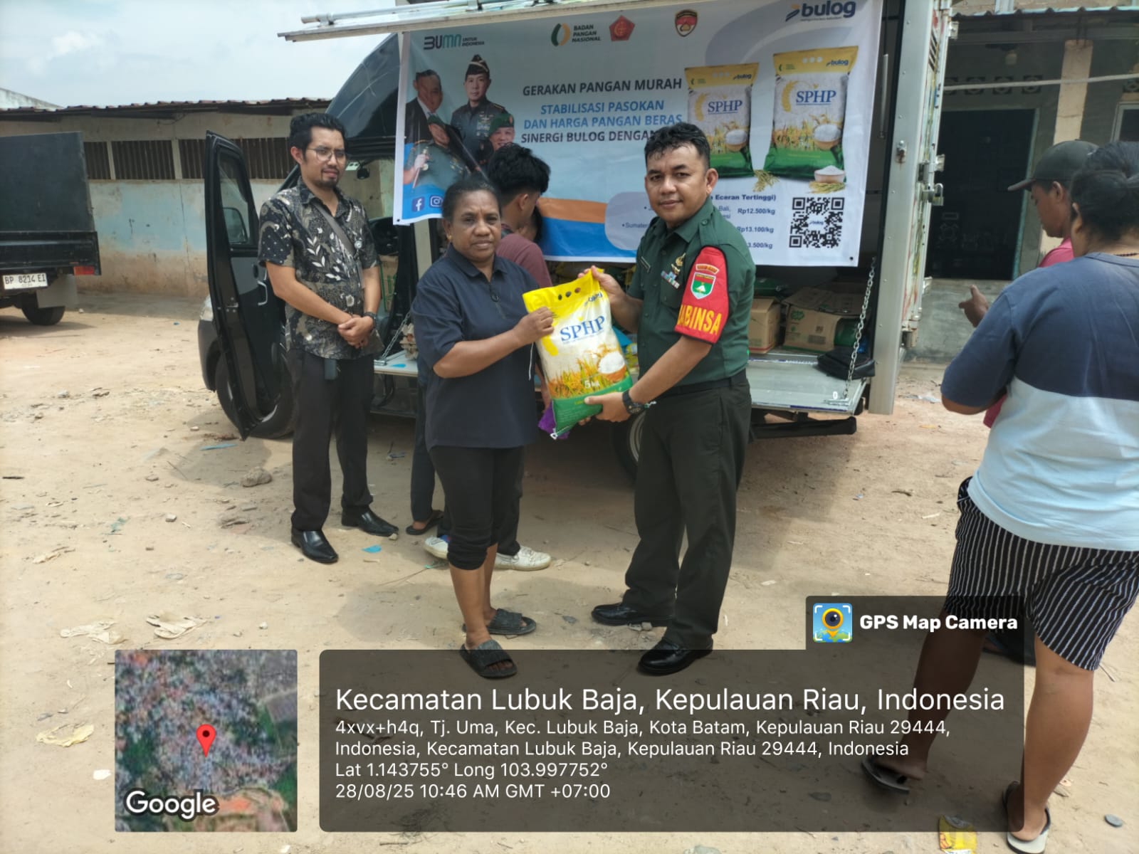 Kodim0316] Babinsa Kelurahan Tanjung Uma, Koramil 01/Lubuk Baja, Sertu Thomsony Siregar, melaksanakan kegiatan Komunikasi Sosial (Komsos) sekaligus menggelar Gerakan Pangan Murah (GPM) bersama Bulog, Kamis (28/8/2025) di wilayah Kelurahan Tanjung Uma, Kecamatan Lubuk Baja.