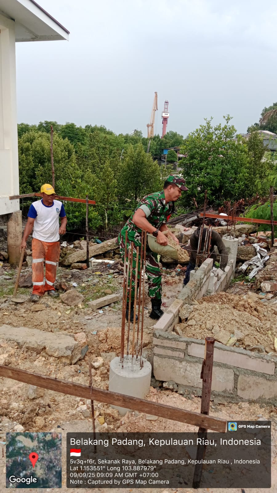 Kodim0316] Peran Bintara Pembina Desa (Babinsa) kembali terlihat nyata di tengah masyarakat. Kali ini, Babinsa 03/Kelurahan Pemping Koramil 05/Belakang Padang, Serka Eko, turun langsung membantu warga dalam pembangunan Posyandu di wilayah Kecamatan Belakang Padang, Selasa (9/9/2025) pagi.