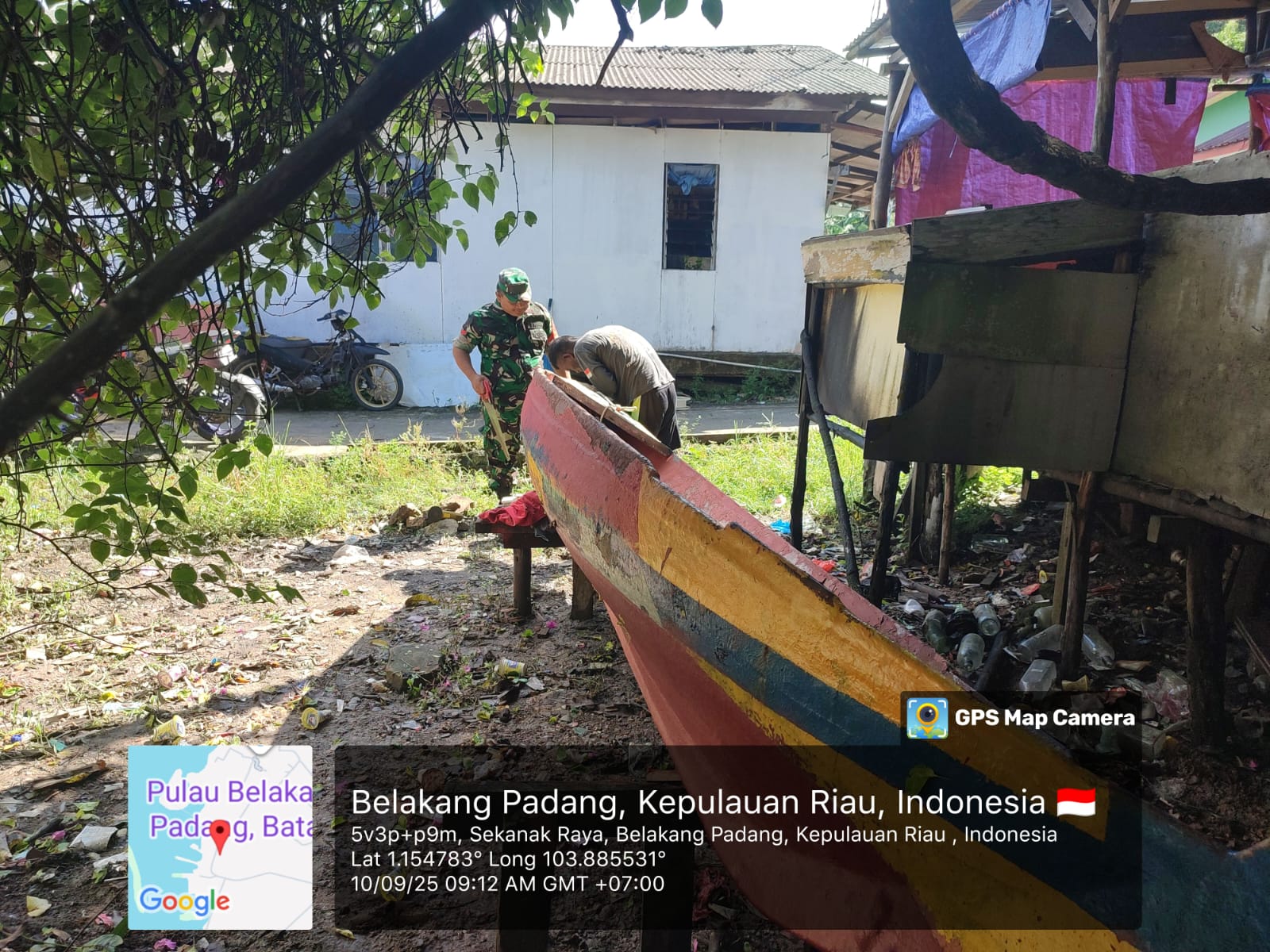 Kegiatan berlangsung di Kampung Dapur Arang, Kecamatan Belakang Padang, dengan melibatkan sejumlah warga, di antaranya Bapak Paulus dan Bapak Reyhan, serta masyarakat sekitar. Suasana penuh keakraban tampak ketika Babinsa duduk bersama warga, berdialog, hingga ikut terlibat langsung membantu pekerjaan mereka.