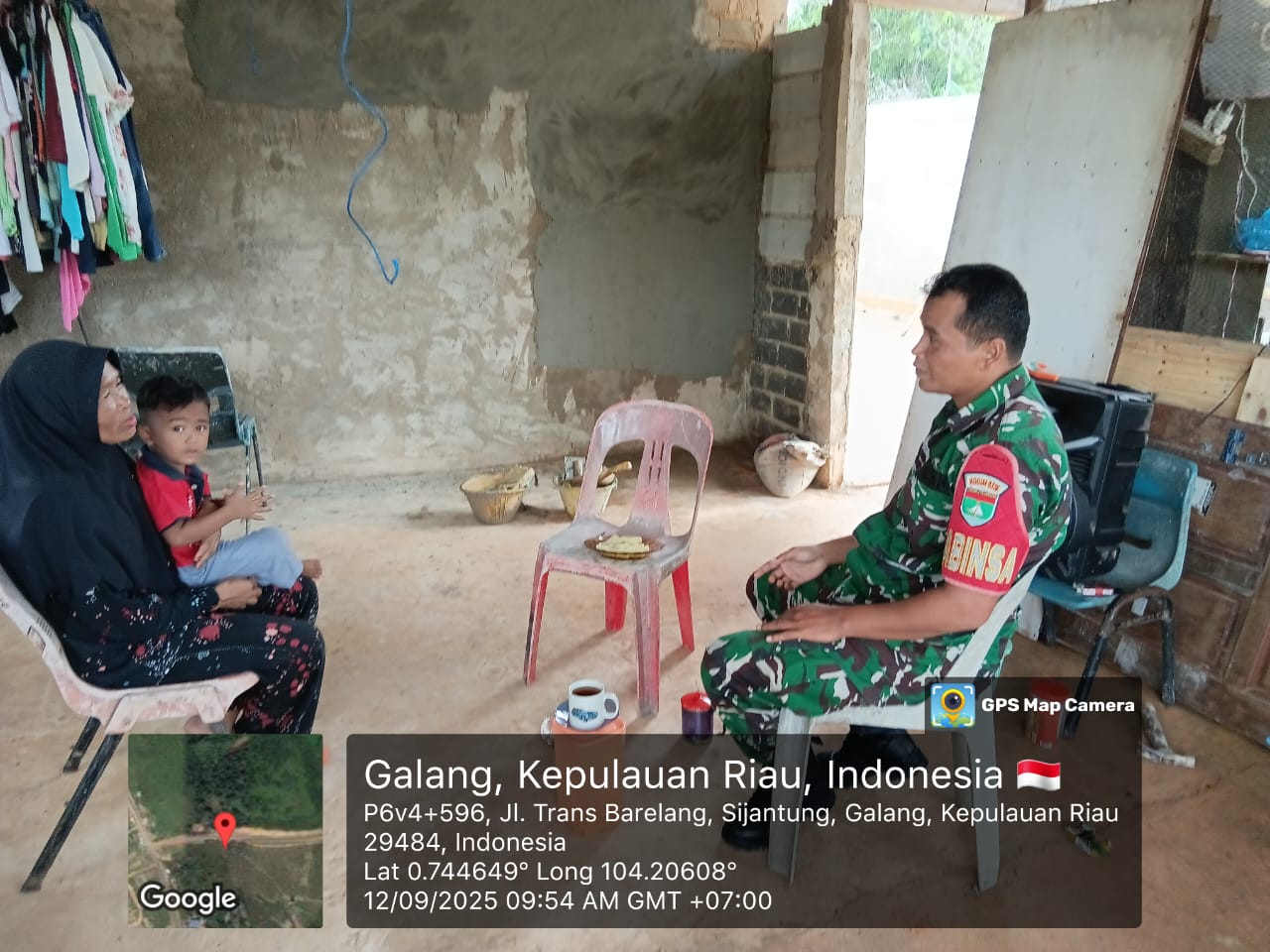 Kodim0316] Galang – Upaya menjalin kedekatan dengan masyarakat binaan terus dilakukan oleh TNI AD. Pada Jumat (12/9/2025), Babinsa Kelurahan Sijantung, Koramil 04/Galang, Serda Dedi Putra, melaksanakan kegiatan komunikasi sosial (Komsos) bersama warga di RT 01 Kelurahan Sijantung, Kecamatan Galang.
