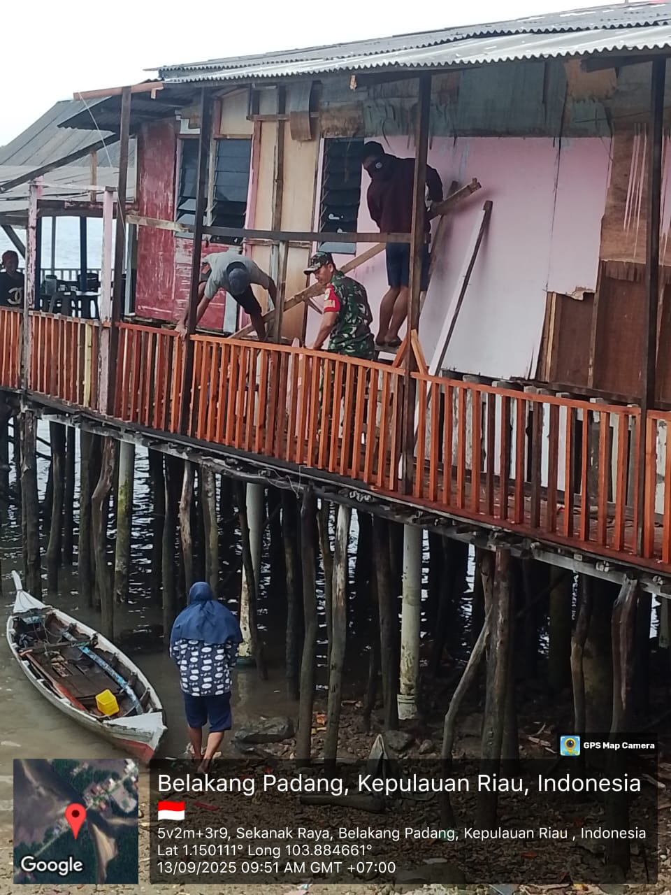 Pada kesempatan itu, Babinsa 06/Kasu, Serda O. Banjarnahor, turun langsung menyambangi warga di Kampung Tempang, Kelurahan Sekanak Raya, Kecamatan Belakang Padang. Selain melaksanakan Komsos, ia juga turut serta membantu warga yang sedang memperbaiki rumah mereka yang berada di atas laut.