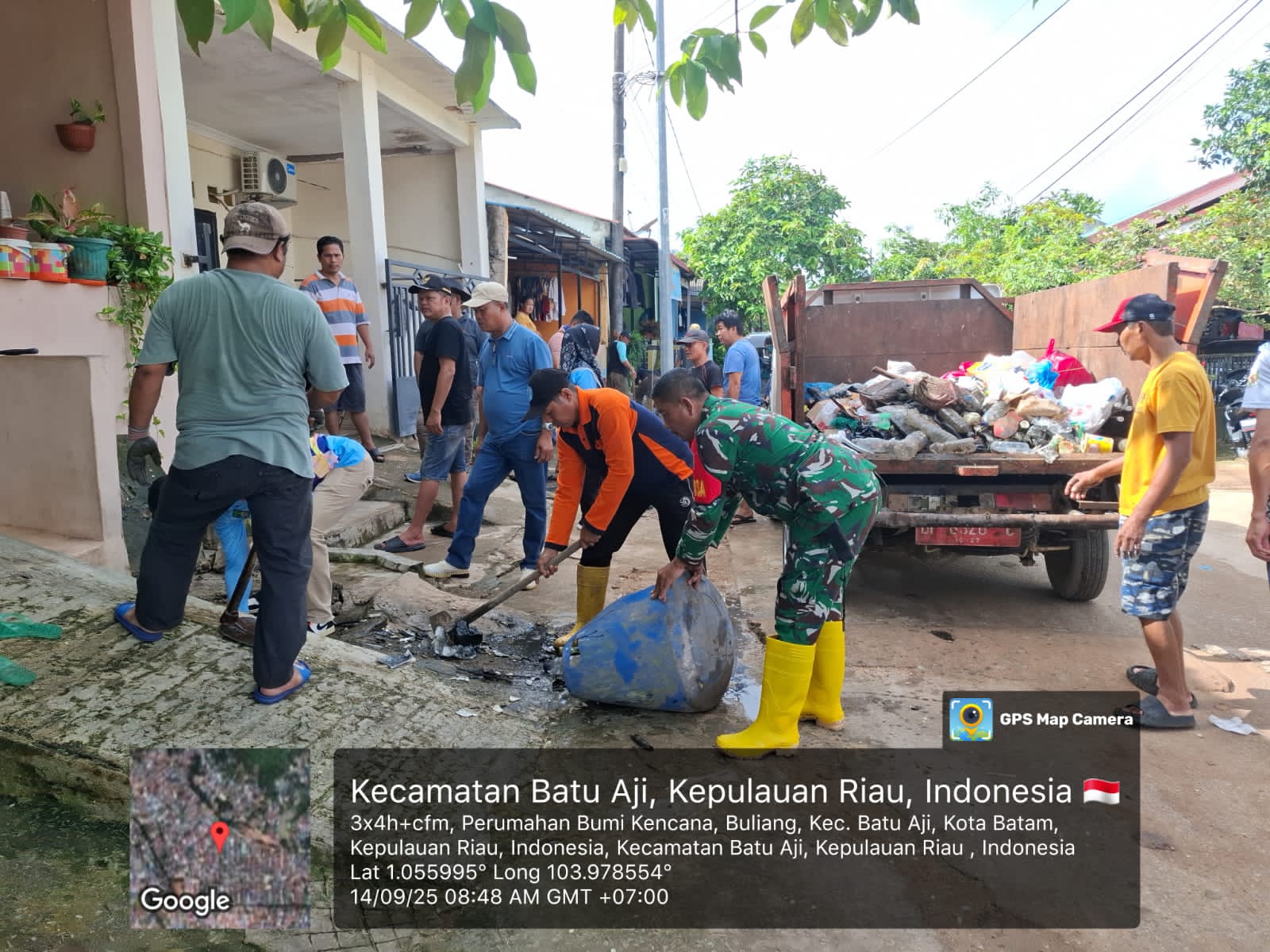 Kodim0316] Kepedulian terhadap lingkungan kembali ditunjukkan warga Kecamatan Batu Aji. Pada Minggu (14/9/2025) pagi, Babinsa Kelurahan Buliang, Koramil 02/Sekupang, Serka Z. Dalimunthe turun langsung bersama warga dalam kegiatan gotong royong di Perumahan Bumi Kencana, RT 01 RW 23, Kelurahan Buliang, Kecamatan Batu Aji.