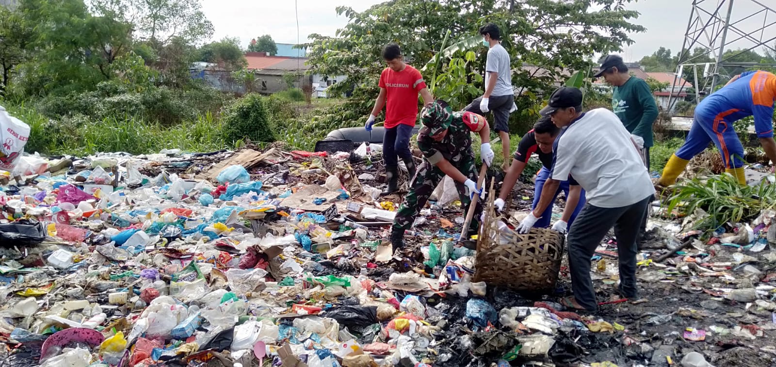 Gotong royong difokuskan pada pembersihan area sekitar TPS Darusalam yang selama ini sering menjadi sorotan warga karena tumpukan sampah sudah mulai mengarah ke badan jalan. Dengan berkolaborasi bersama petugas kebersihan, masyarakat dan aparat bahu membahu mengangkat sampah, mengumpulkannya, dan selanjutnya dibawa menggunakan truk sampah menuju Tempat Pembuangan Akhir (TPA) di Punggur.