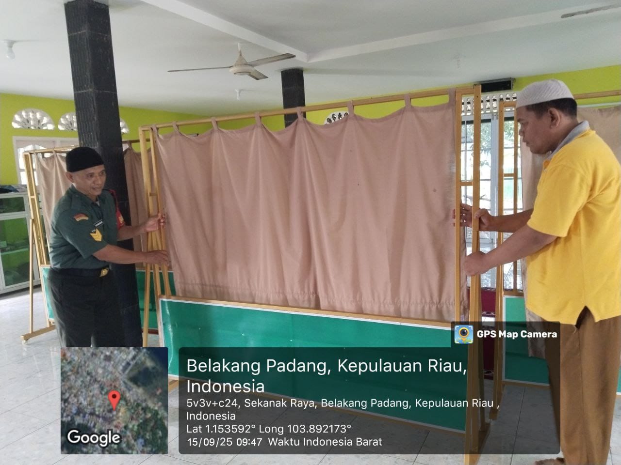 Tak hanya berdialog, Babinsa juga turut membantu Imam Masjid membersihkan kaca dan merapikan pembatas sholat laki-laki dan perempuan di lingkungan Masjid Nurul Falah. Aksi kecil ini mendapat apresiasi dari Imam Masjid, karena mencerminkan kedekatan Babinsa dengan masyarakat.