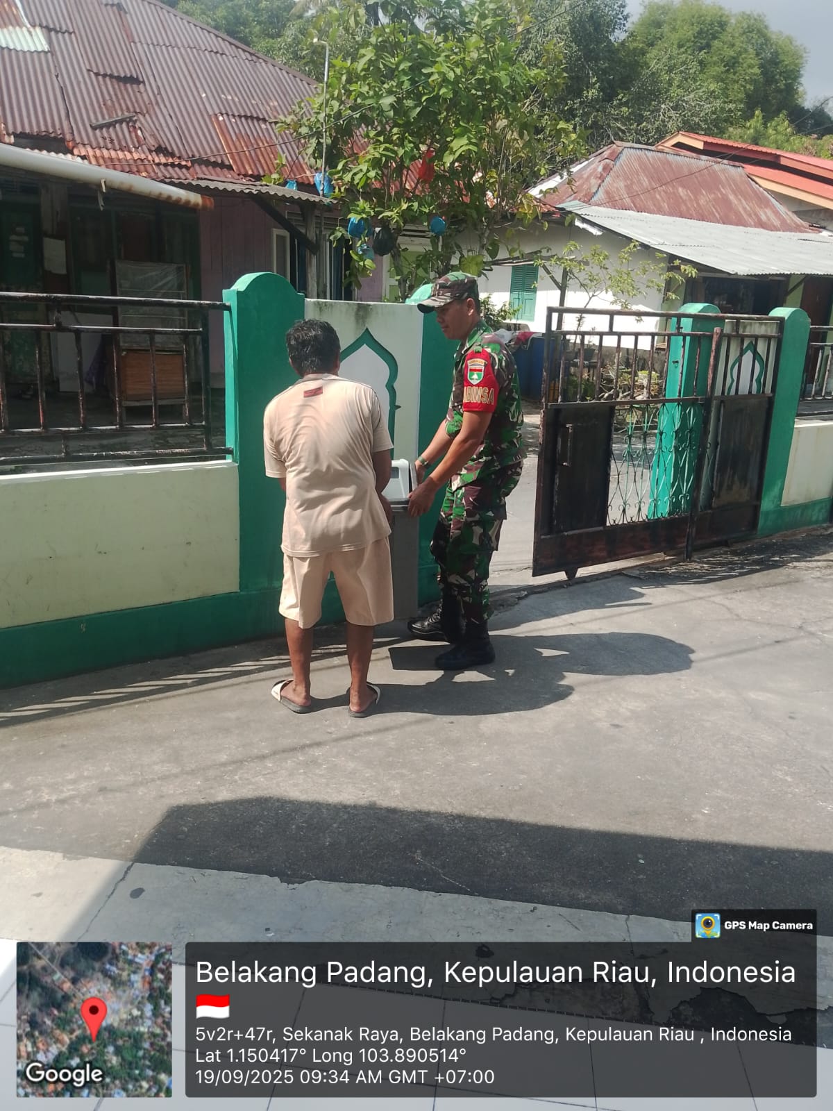 Kodim0316] Kepedulian TNI terhadap kebersihan lingkungan dan kenyamanan masyarakat dalam beribadah kembali diwujudkan melalui kegiatan komunikasi sosial (komsos) yang dilakukan Babinsa Koramil 05/Belakang Padang. Pada Jumat (19/9/2025) pagi, Babinsa 06/Kasu, Serda O. Banjarnahor, turun langsung membantu warga membersihkan Masjid Nurul Ikhsan di Kampung Jawa, Kelurahan Sekanak Raya, Kecamatan Belakang Padang.