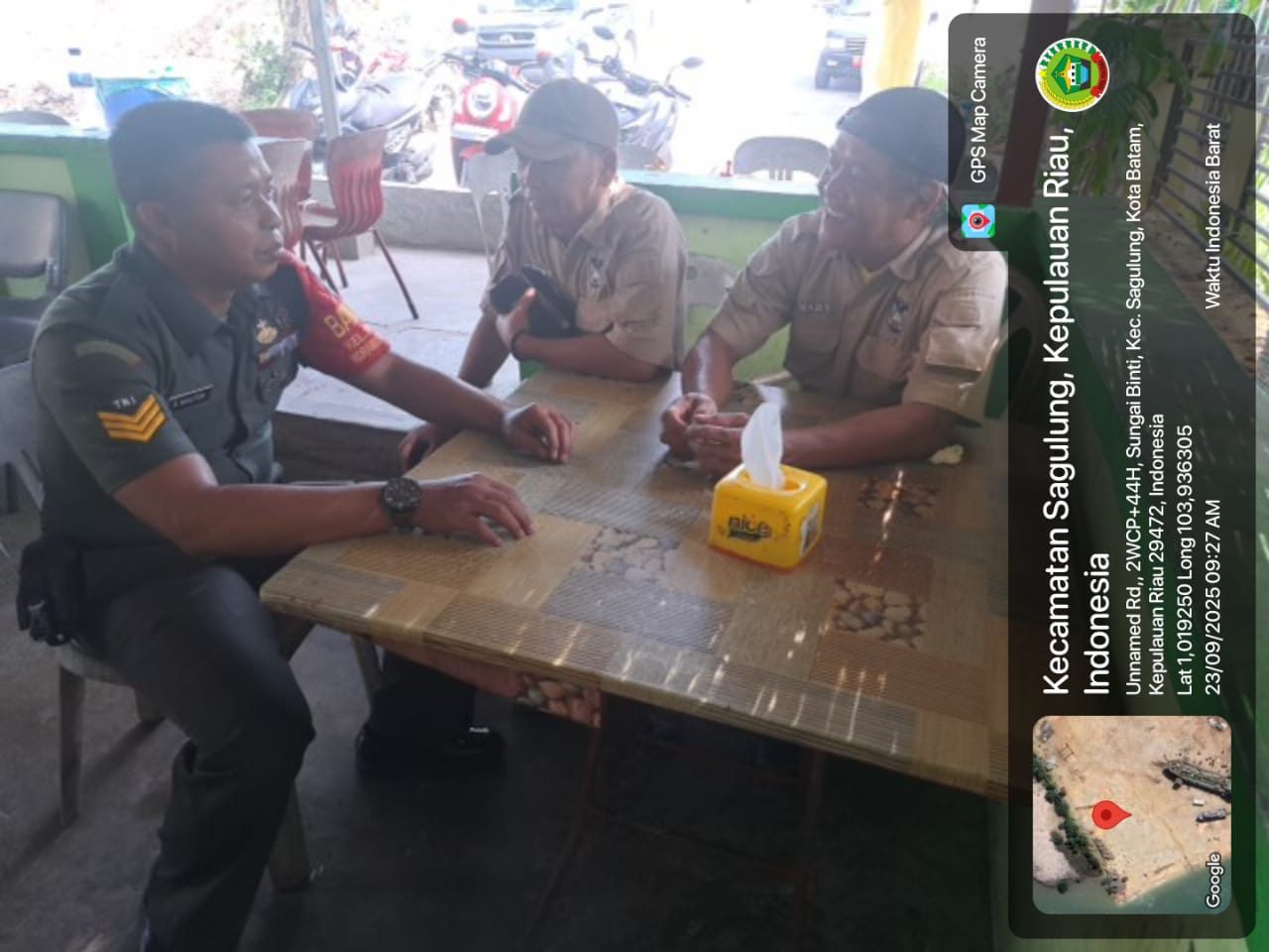Kodim0316] Pagi yang cerah di RT 01 RW 02, Kelurahan Sei Binti, Kecamatan Sagulung, menjadi saksi keakraban antara aparat TNI dengan masyarakat. Babinsa 17 Kelurahan Sei Binti, Koramil 02/Sekupang, Kodim 0316/Batam, Serka Asran Nasution, hadir langsung untuk melaksanakan kegiatan komunikasi sosial (komsos) bersama warga pada Selasa (23/9) pukul 09.15 WIB.