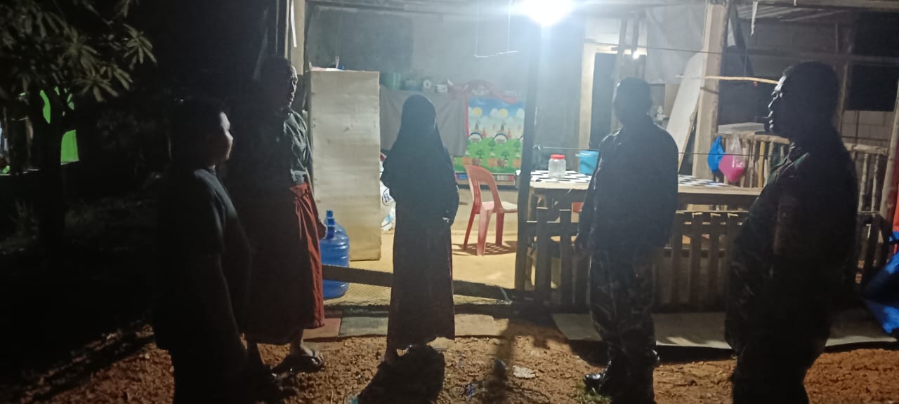 Patroli siskamling malam itu dimulai dari simpang dapur 3, salah satu titik keramaian warga yang masih aktif hingga larut. Beberapa warung kopi dan kedai sederhana tampak ramai dengan obrolan warga. Kehadiran aparat langsung menarik perhatian. Namun, suasana tidak kaku. Para personel Koramil menyapa hangat, menanyakan kabar, sembari menyelipkan pesan sederhana: jaga keamanan lingkungan, tetap waspada, jangan lengah.